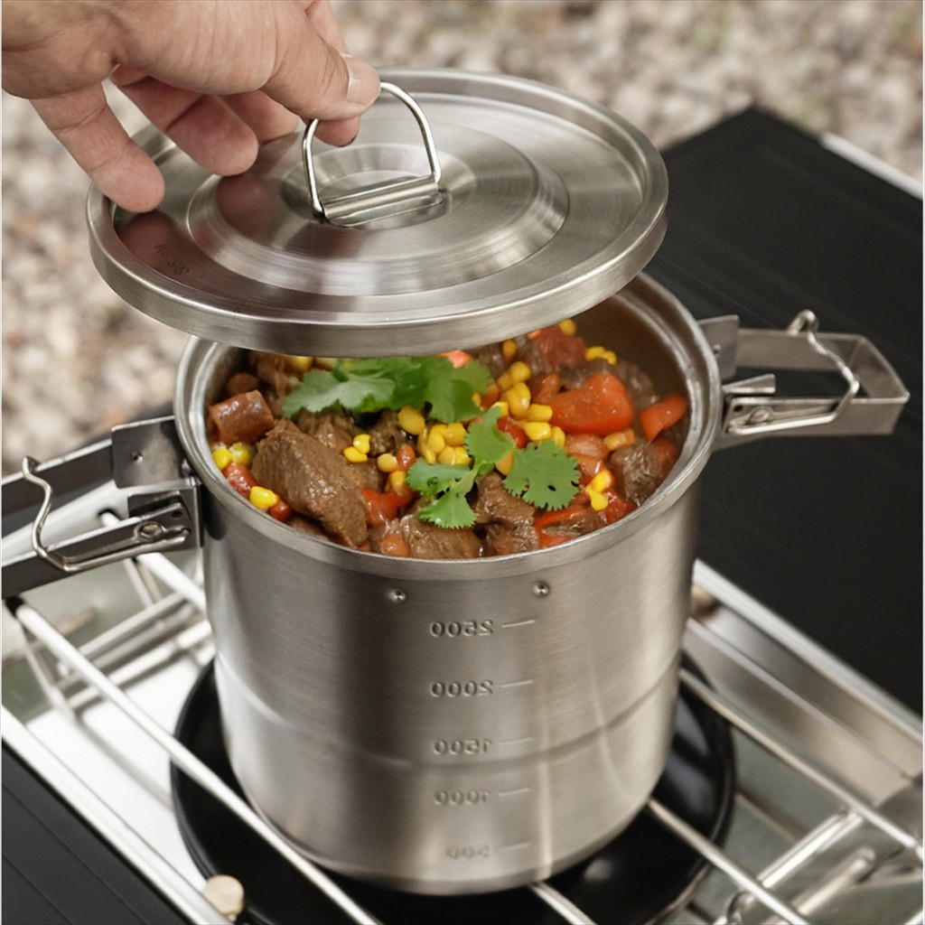 Peralatan masak ini terbuat dari 304 Stainless Steel berkualitas tinggi yang kuat, anti karat, dan mudah dibersihkan. Desain elegan dengan dua pilihan model Handle atau Double-Ear membuatnya praktis digunakan baik untuk memasak di rumah maupun aktivitas outdoor seperti camping dan piknik.