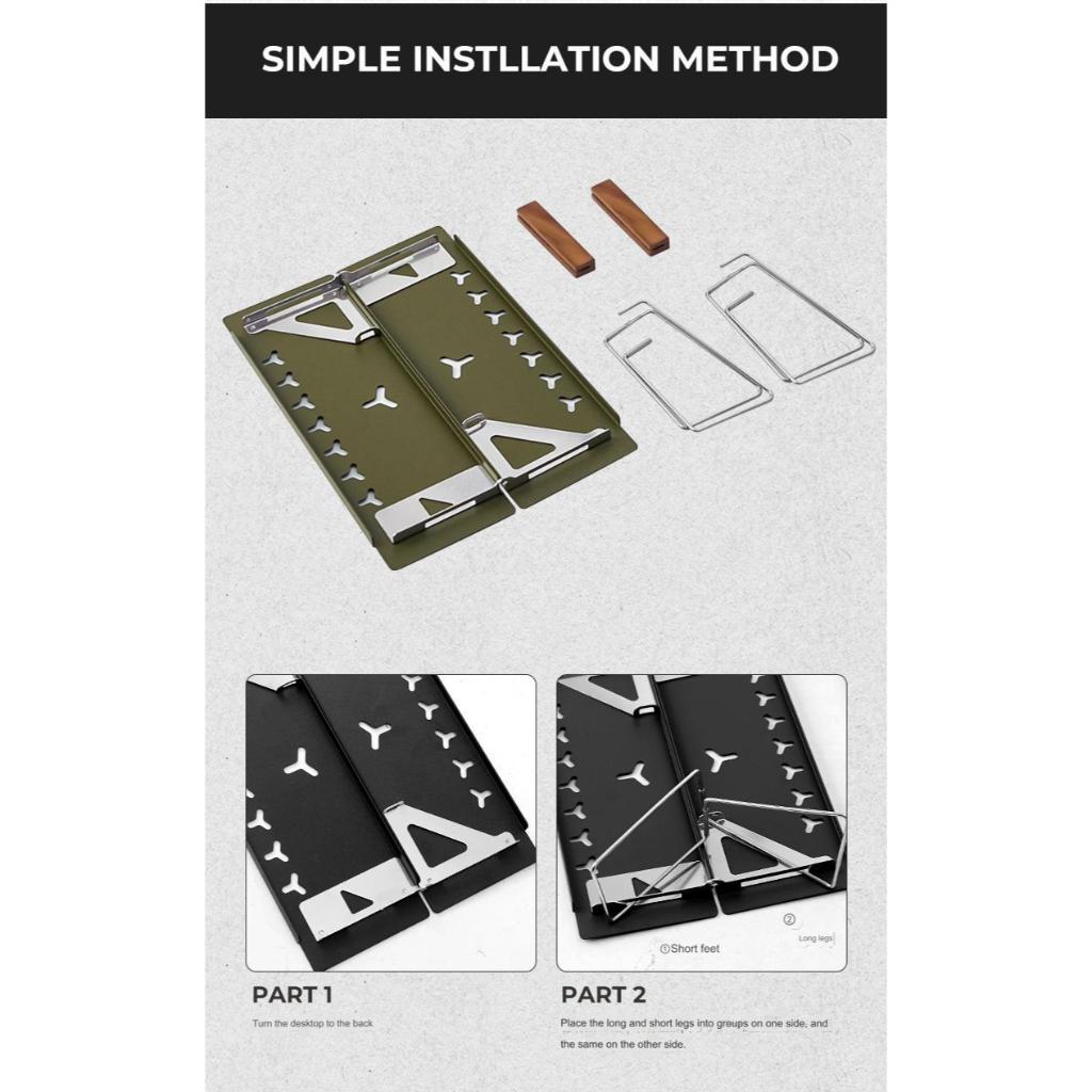 * Bagian atas meja paduan aluminium, ringan dan tahan lama, mudah dirawat;