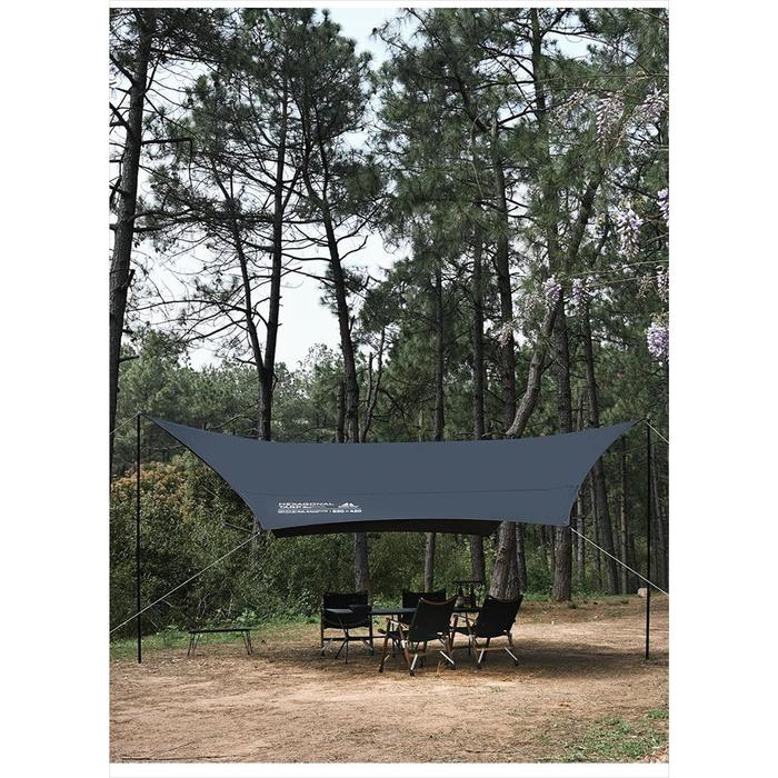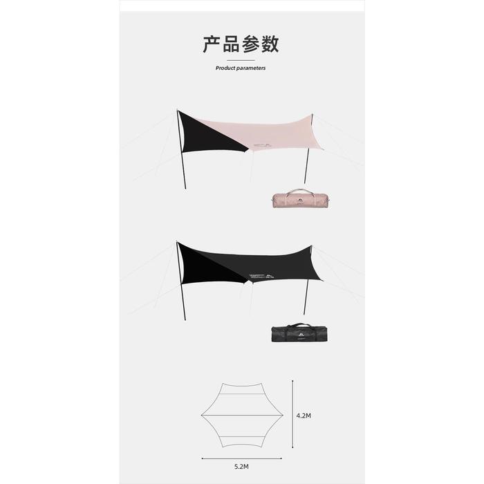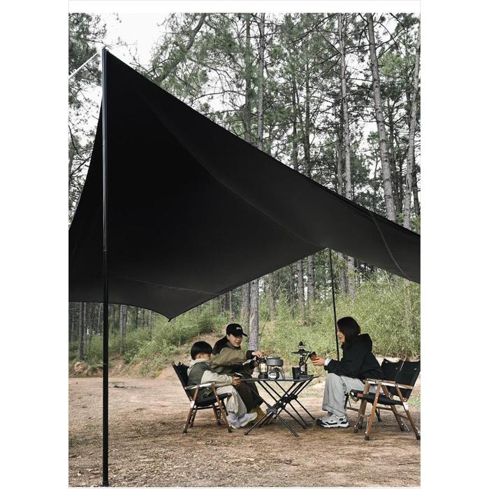 Flysheet Hexagonal dari brand SHINETRIP berwana Hitam dan Quicksand(Khaki) yang berukuran luas.