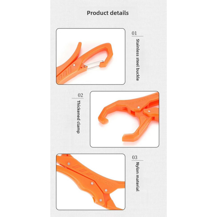 Fitur: Desain bukaan besar, pengikat aman, ringan dan portabel, penutupan rahang rapat