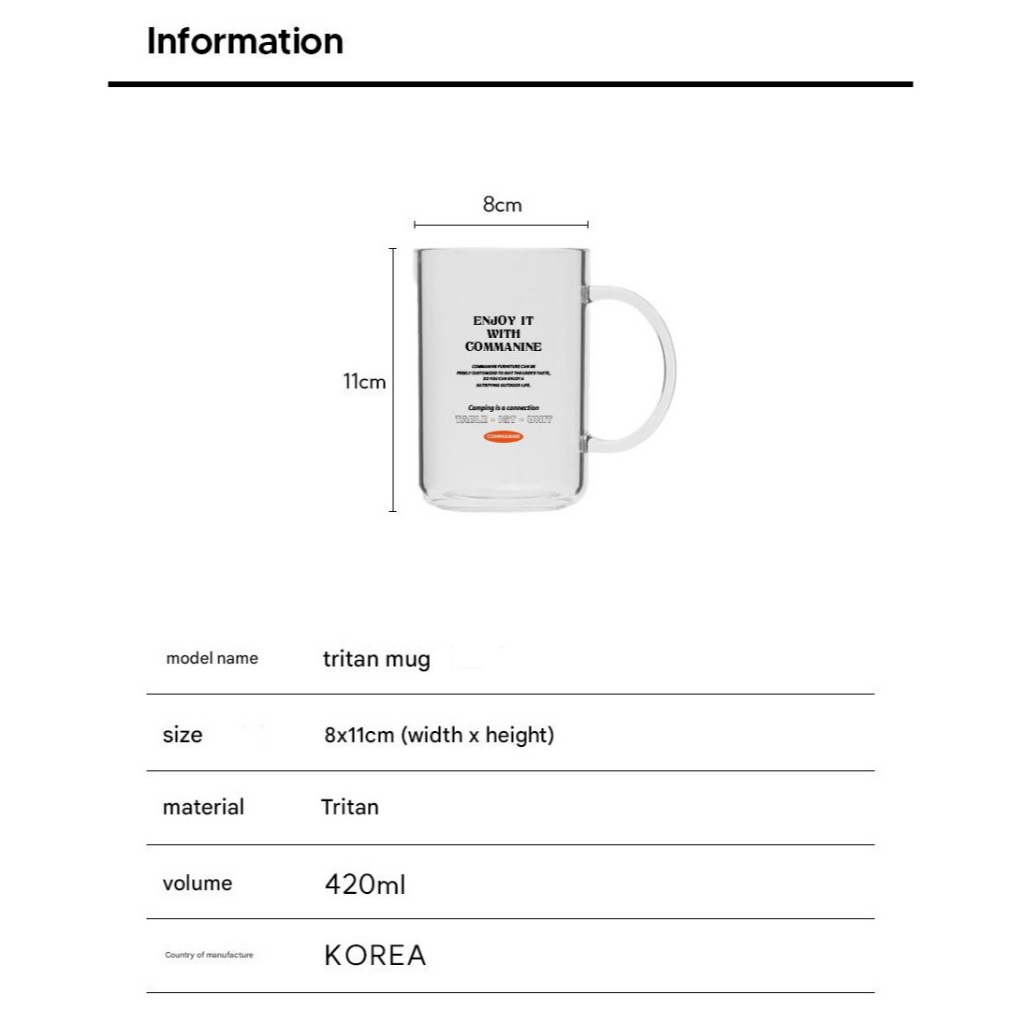 Mug cup terbuat dari Tritan, bahan ramah lingkungan, tidak berbahaya bagi tubuh manusia, kuat dan ringan, sehingga dapat digunakan dengan nyaman selama aktivitas luar luangan.