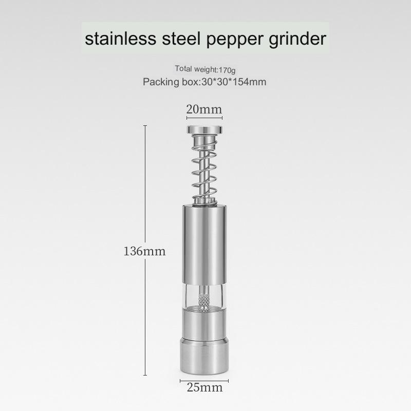Mudah digunakan. Tekan tombol atas untuk menggiling garam segar atau merica. Tidak perlu baterai.