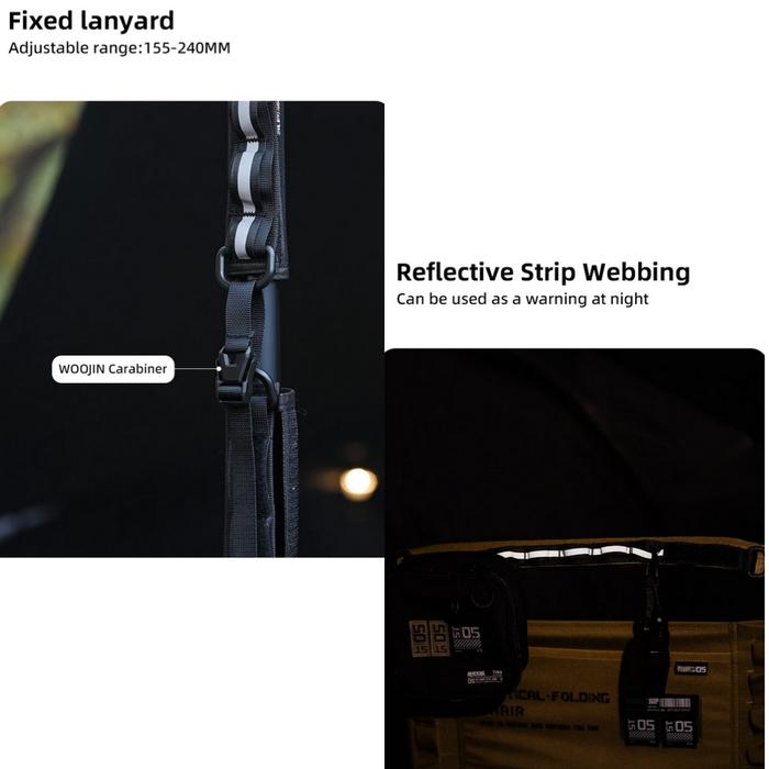 2. Keamanan Malam Hari: Dilengkapi dengan strip reflektif dan anyaman, penutup ini memastikan visibilitas dalam kondisi cahaya redup, berfungsi sebagai peringatan untuk meningkatkan keselamatan selama perjalanan berkemah malam hari.