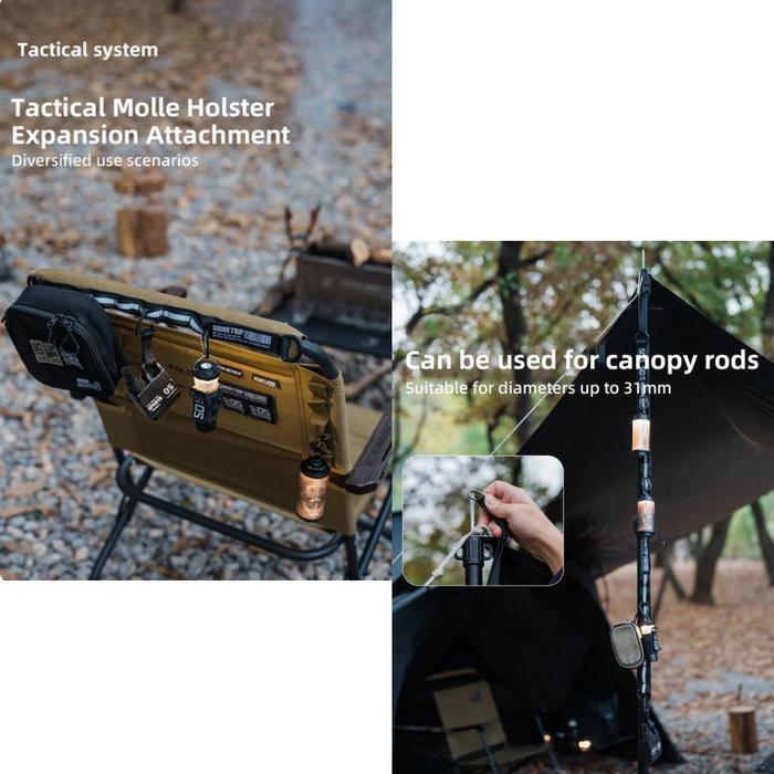 1. Penggunaan Serbaguna: Penutup Gantung Tiang Kanopi Seri ShineTrip 05 dirancang untuk menggantung berbagai peralatan berkemah, memberikan solusi penyimpanan yang nyaman untuk petualangan luar ruangan.