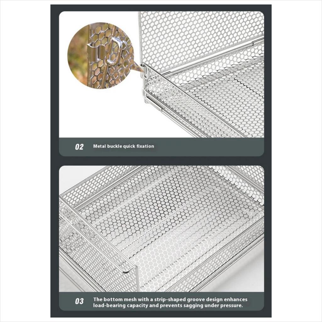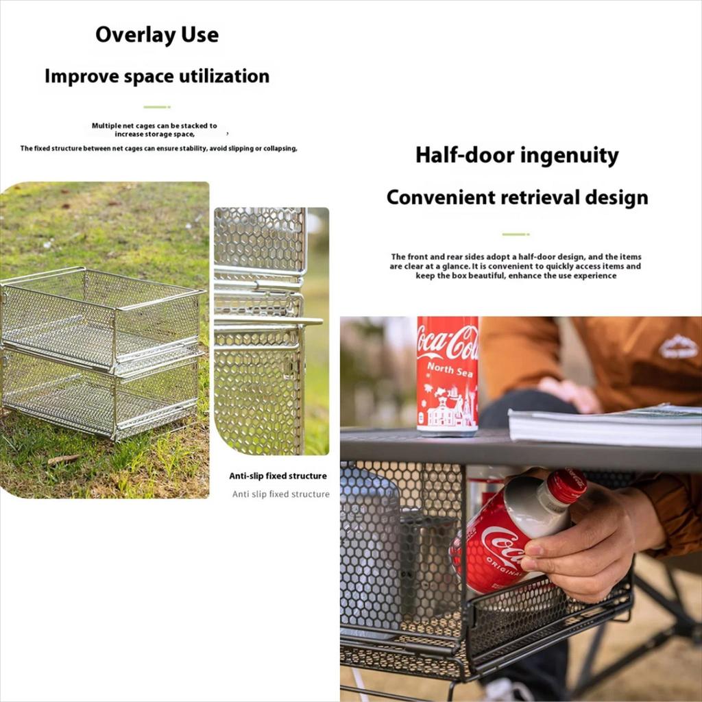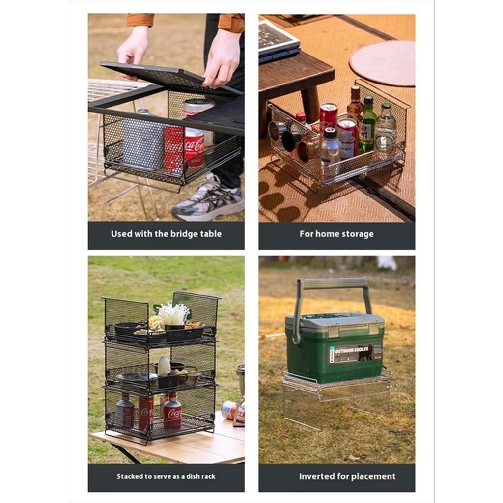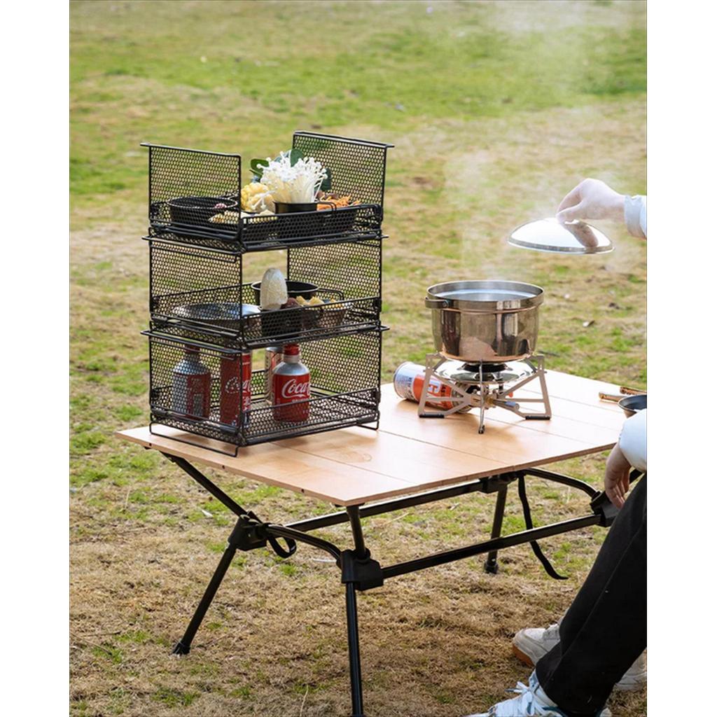 – Multifungsi 2-in-1: Berfungsi sebagai kotak penyimpanan barang, sekaligus rak serbaguna yang dapat ditumpuk (stackable), ideal untuk memasak, piknik, dan aktivitas outdoor lainnya.