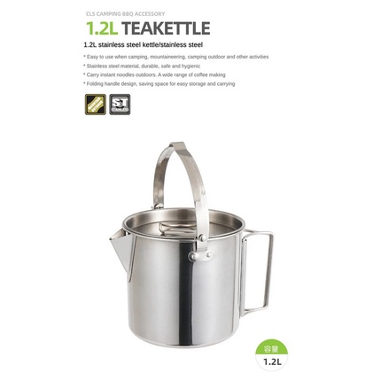 Kettle Multifungsi 1,2L Stainless Steel Nesting Outdoor Camping Hiking Panci Kemah Mendaki