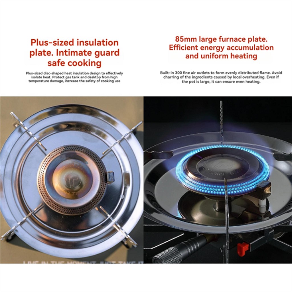 Campingmoon XD-5F dirancang untuk kebutuhan memasak luar ruang yang praktis dan aman. Menggunakan material stainless steel, aluminium alloy, dan kuningan berkualitas. Kompor ini tahan karat, tahan panas, dan sangat kokoh.