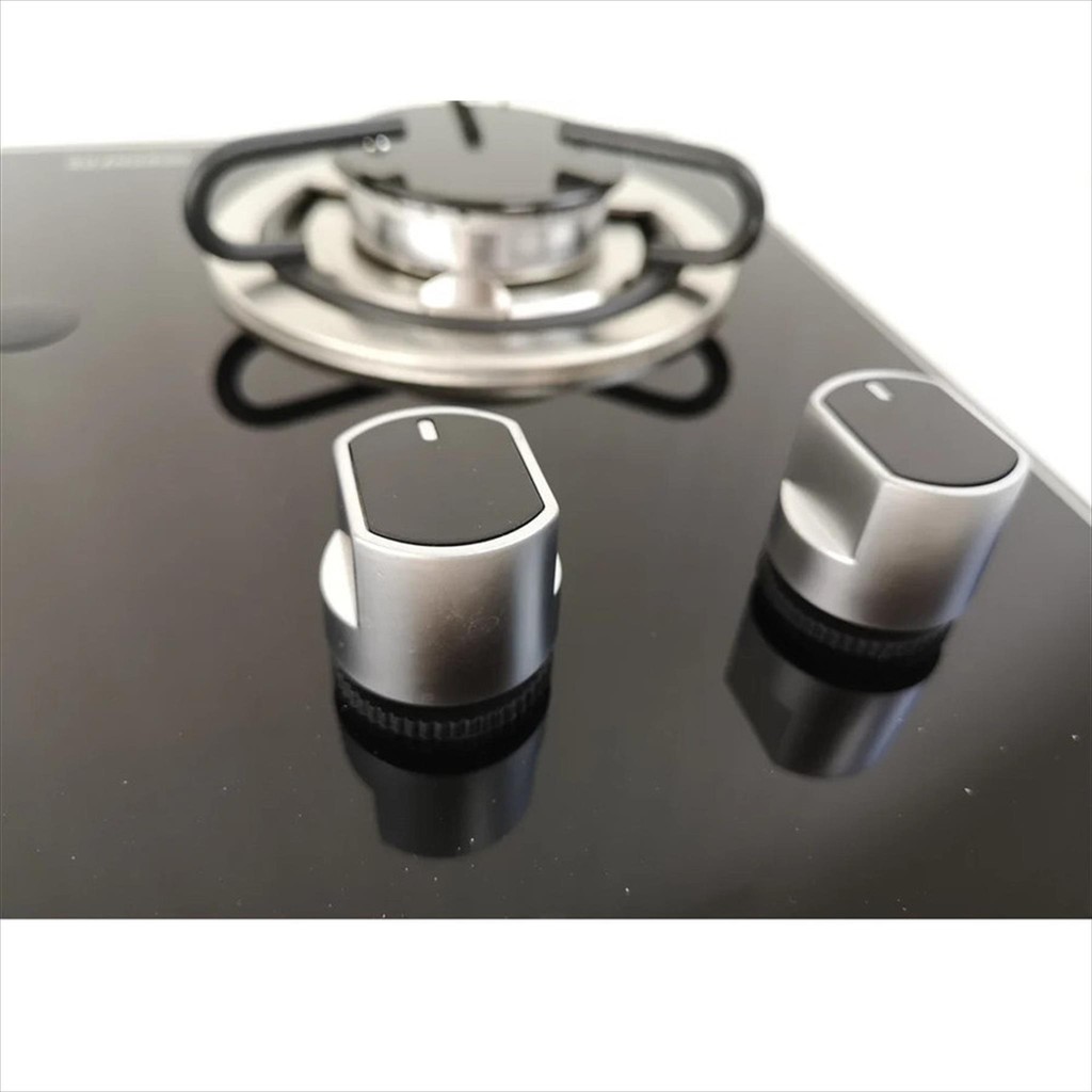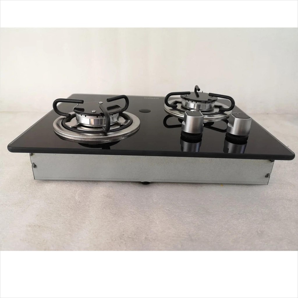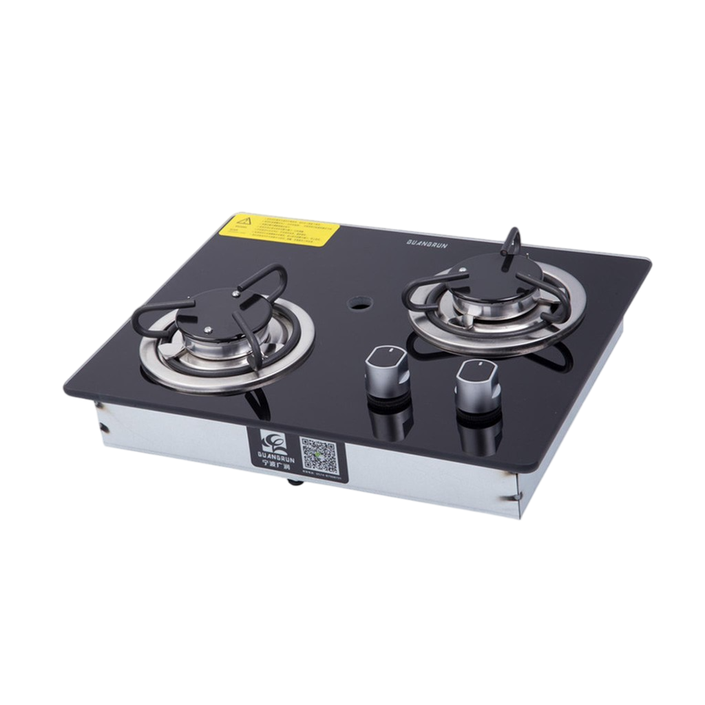 GUANGRUN GR-B003 kompor 2 tungku dengan material campuran stainless dan kaca anti gores.