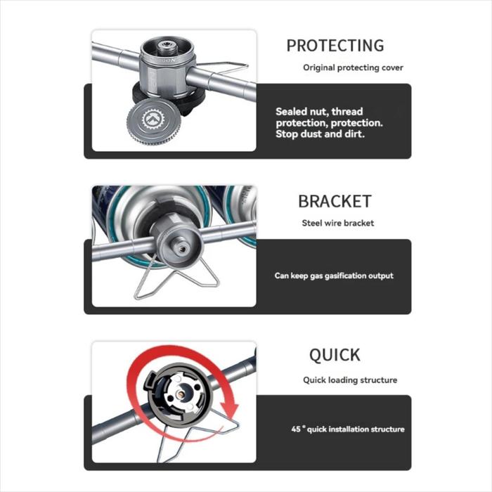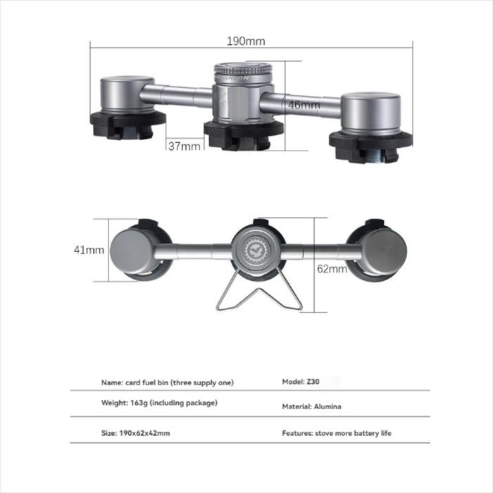Campingmoon Z30 dirancang untuk menyambungkan hingga 3 tabung gas butane sekaligus, memberikan output gas yang lebih stabil dan daya tahan lebih lama untuk aktivitas memasak outdoor.