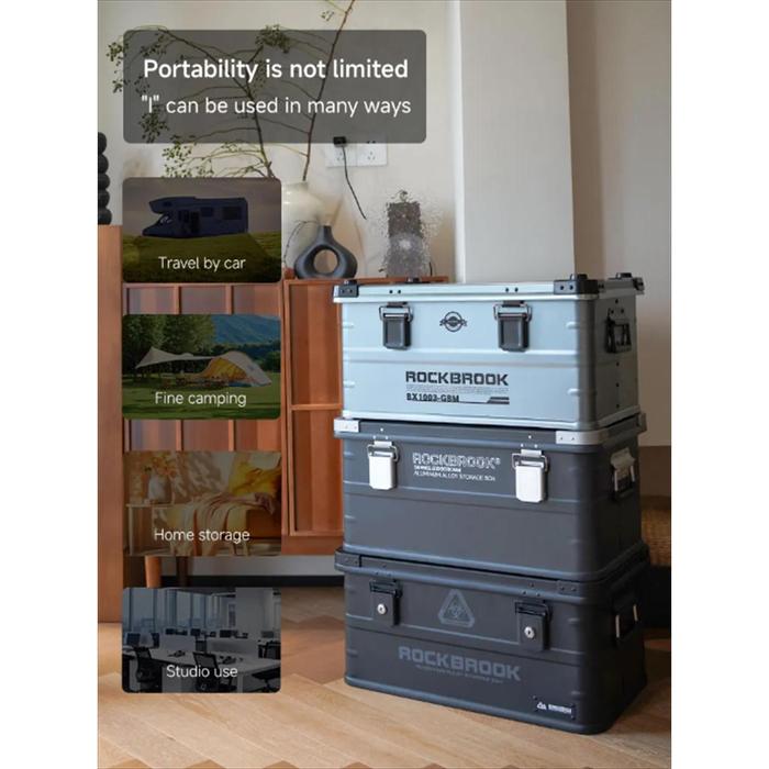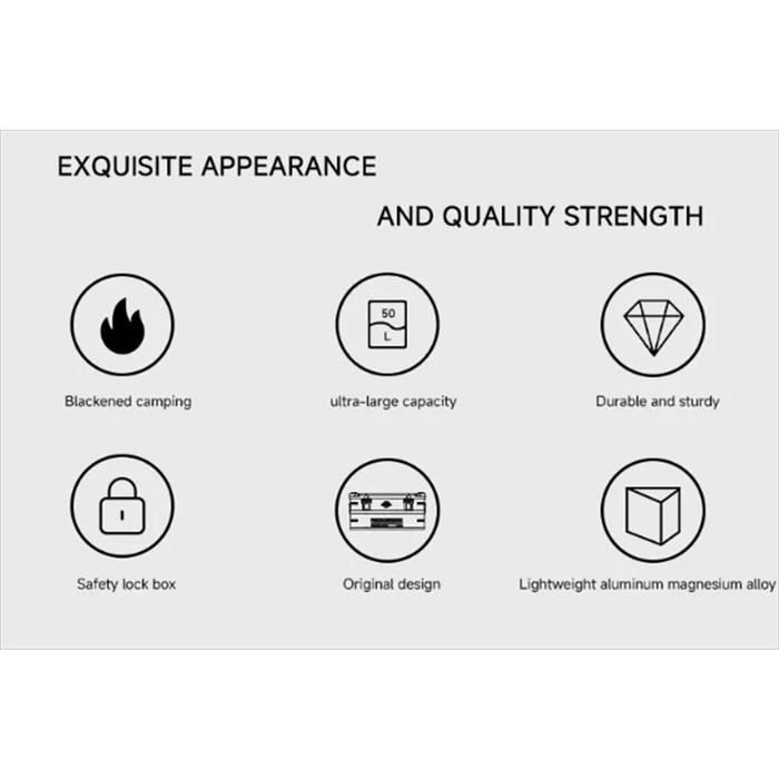 Kotak penyimpanan serbaguna berkapasitas 50L yang dirancang dengan bahan aluminium magnesium alloy tebal 1.0mm. Cocok digunakan sebagai box peralatan, hingga perlengkapan outdoor karena dilengkapi seal tahan air, pengunci kokoh, dan sudut pelindung. Desain minimalis namun sangat kuat dan ringan.