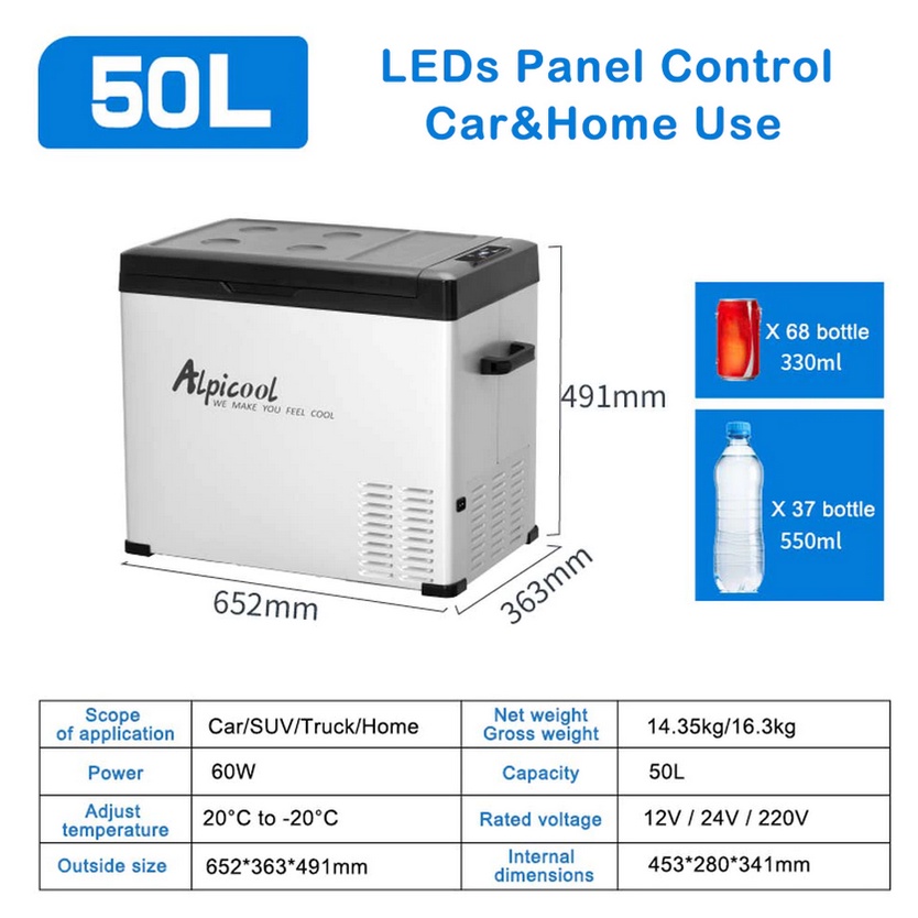 Kulkas ALPICOOL C50 ini dapat digunakan dirumah dan di mobil, terdapat 2 port yang sudah include ke dalam paket pembelian. Daya kulkas ini mengguanakan listrik bukan baterai.