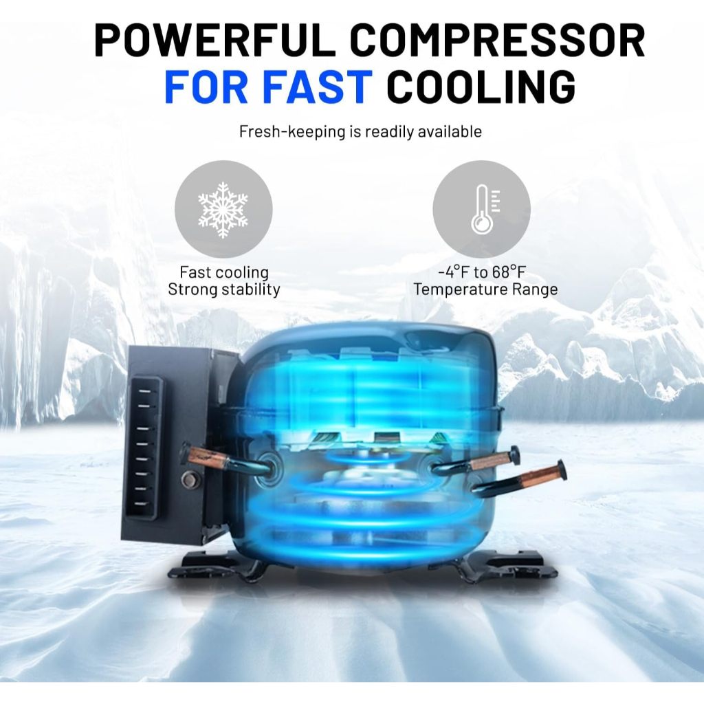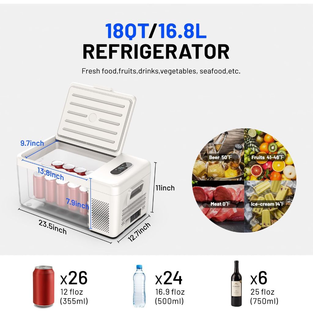 Package: • 1 X Alpicool fridge freezer • 1 X DC power cord(12/24V) • 1 X AC adapter(100-240V) • 1 X Instruction book