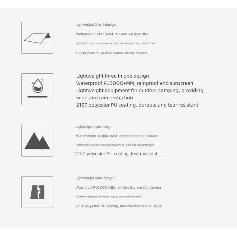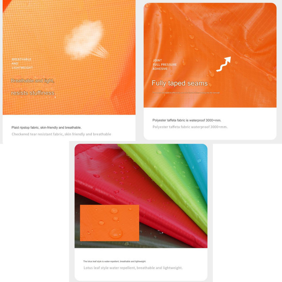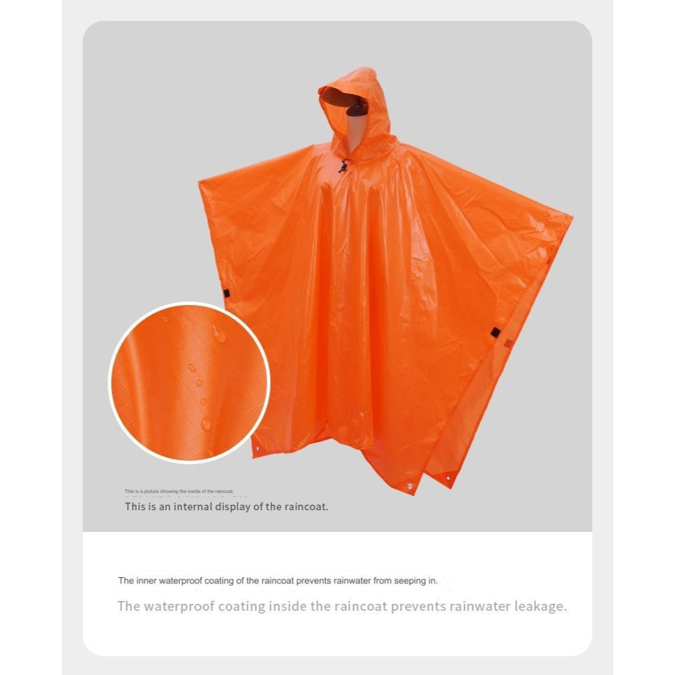— One raincoat, three uses: rain cape/ground cloth/canopy —