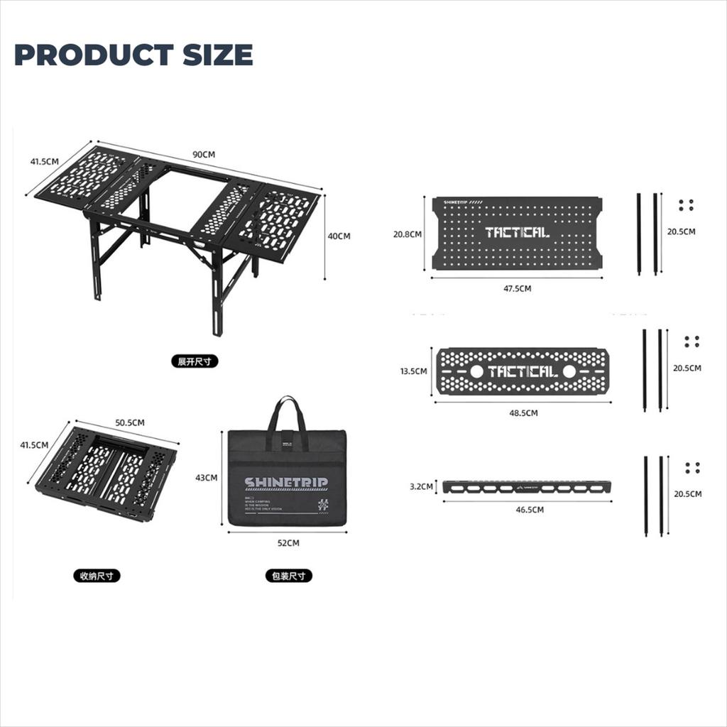 Meja Lipat IGT SHINETRIP Tactical Folding Table Camping, meja outdoor premium dengan desain kokoh dan modern, cocok untuk aktivitas camping, piknik, memancing, BBQ, overlanding, maupun penggunaan rumahan. Terbuat dari material plat aluminium berkualitas tinggi yang ringan namun sangat kuat, tahan gores, dan anti karat.
