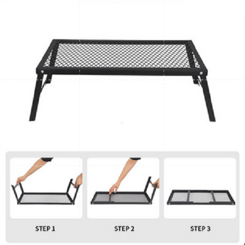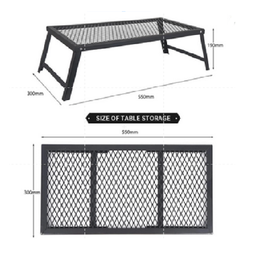 Meja barbekyu ini portabel dan dapat dibawa saat berkemah atau dalam perjalanan.