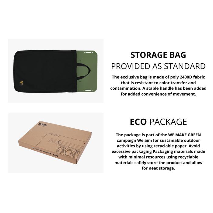 Tabel Minimalworks EGO yang dibuat dengan maksud sebagai tabel saya sendiri adalah tabel yang diminimalkan teknik desain dan menekankan esensi perlengkapan luar ruangan dengan tiga poin utama: “cepat, ringan, dan sederhana”. Mudah dipasang dan dibongkar, sehingga cocok untuk solo camping atau minimal camping. Ini adalah meja serbaguna yang dapat dengan mudah digunakan untuk penggunaan di dalam maupun luar ruangan. Ciptakan ruang Anda sendiri hanya untuk Anda sendiri dengan meja EGO.