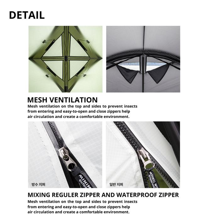 Minimal Works V-House M adalah shelter kompak yang diperkecil ukurannya dari V-House yang dirilis sebelumnya. Kulit depan, belakang, dan samping dapat dibuka dan ditutup dengan bebas, dan struktur ganda dari kulit dan kain jaring menjadikannya model segala cuaca yang dapat digunakan di empat musim, mulai dari kasa jaring hingga kasa terpal, tenda, dan tempat perlindungan musim dingin. Temukan pesona Minimal Works V-House M, yang dapat digunakan dalam berbagai cara tergantung pada lingkungan atau tujuan pengguna.