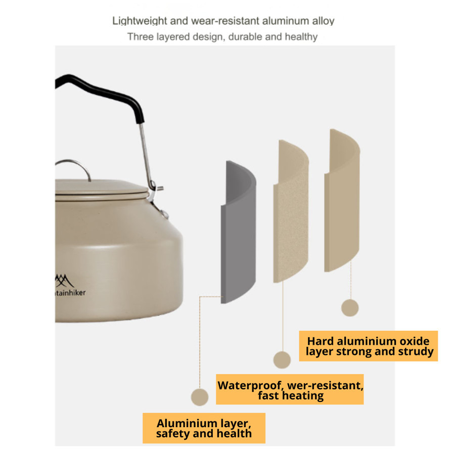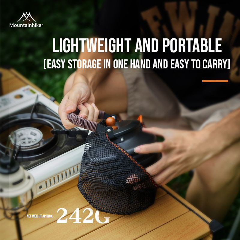 4. Portabel:Ketel air terbuat dari paduan aluminium, ringan dan portabel. Ketel dapat digunakan di dalam ruangan atau dibawa di luar ruangan untuk menikmati berkemah yang indah.