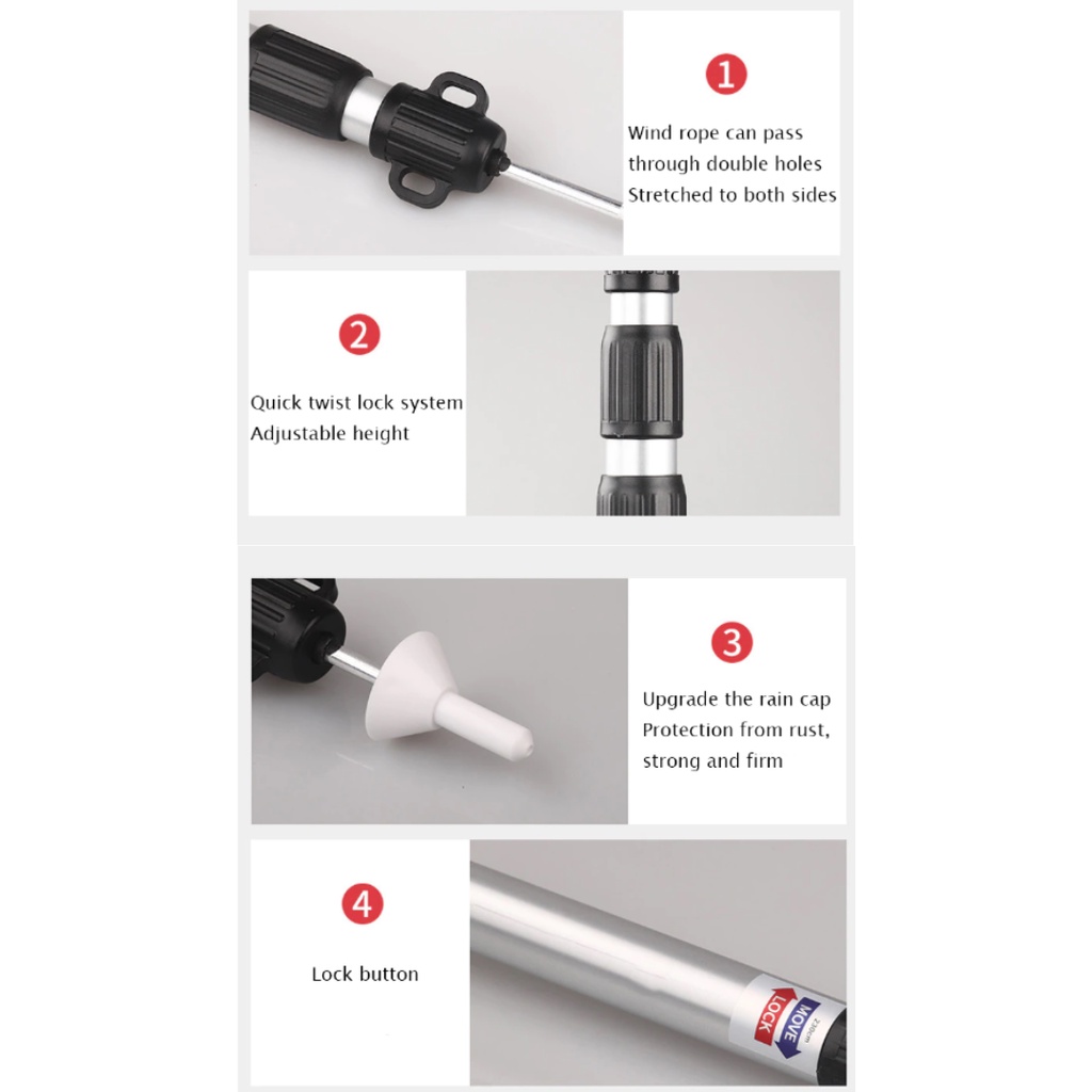 • Telescopic terpal tiang dapat disesuaikan batang tenda terbuat dari kualitas tinggi aluminium Aloi bahan kekuatan tinggi ringan, kuat dan tahan lama
