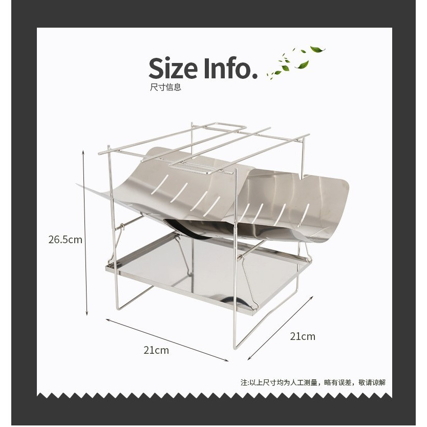 Multifunctional use: boiling water, grilling, cooking, hot pot, as a portable small kitchen. Multiple fuels: alcohol boxes, branches, leaves or wood