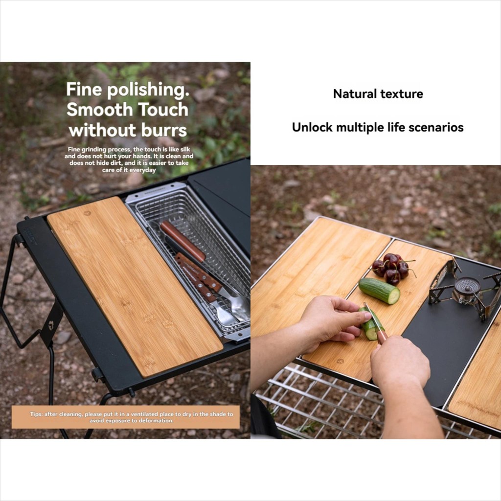 Papan BBQ Bambu CAMPINGMOON adalah aksesori tambahan untuk sistem meja IGT yang dirancang multifungsi dan estetik.