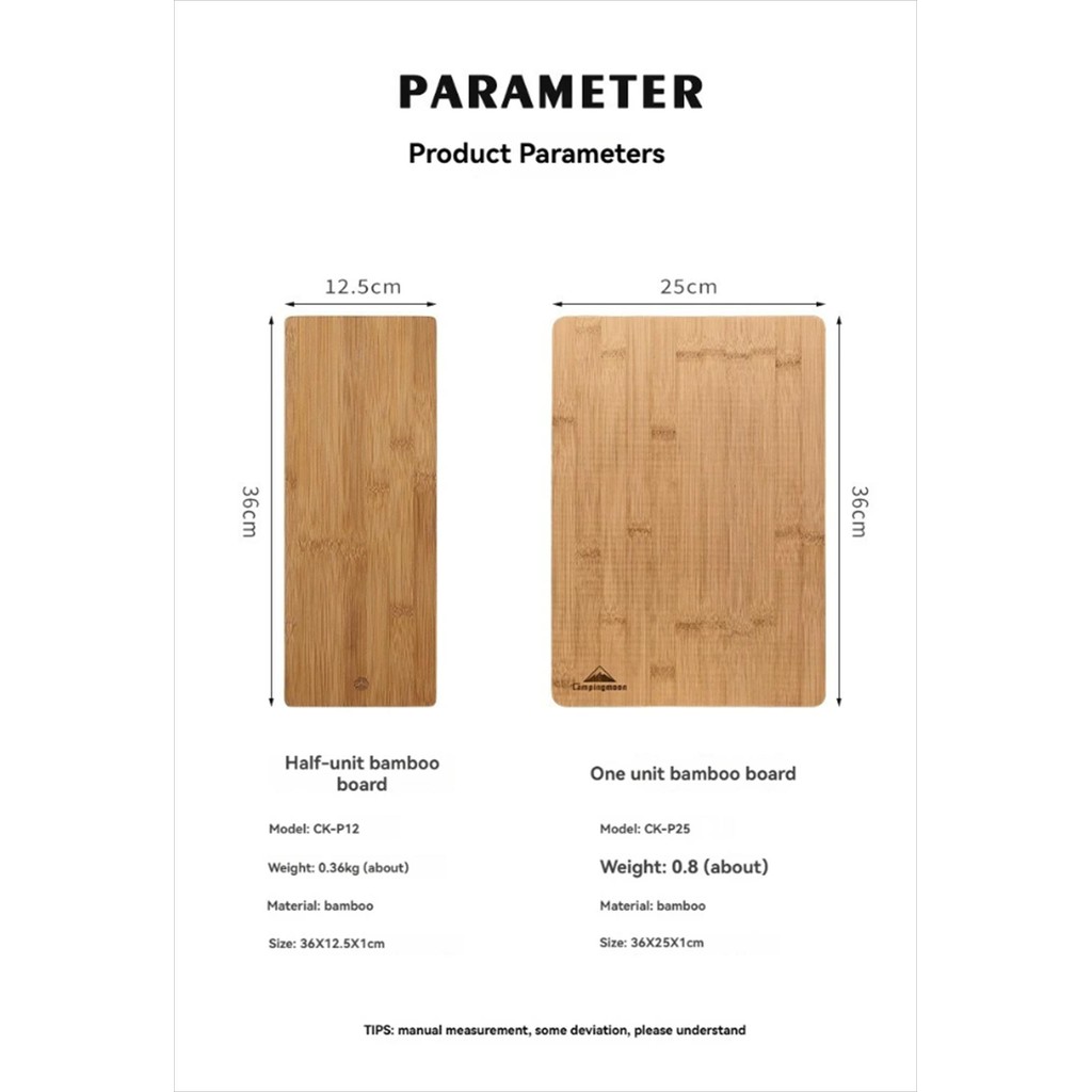 Papan bambu natural dengan finishing halus untuk digunakan sebagai alas potong atau meja tambahan dalam sistem IGT table Campingmoon. Tersedia dalam 2 ukuran: half-unit & one-unit.
