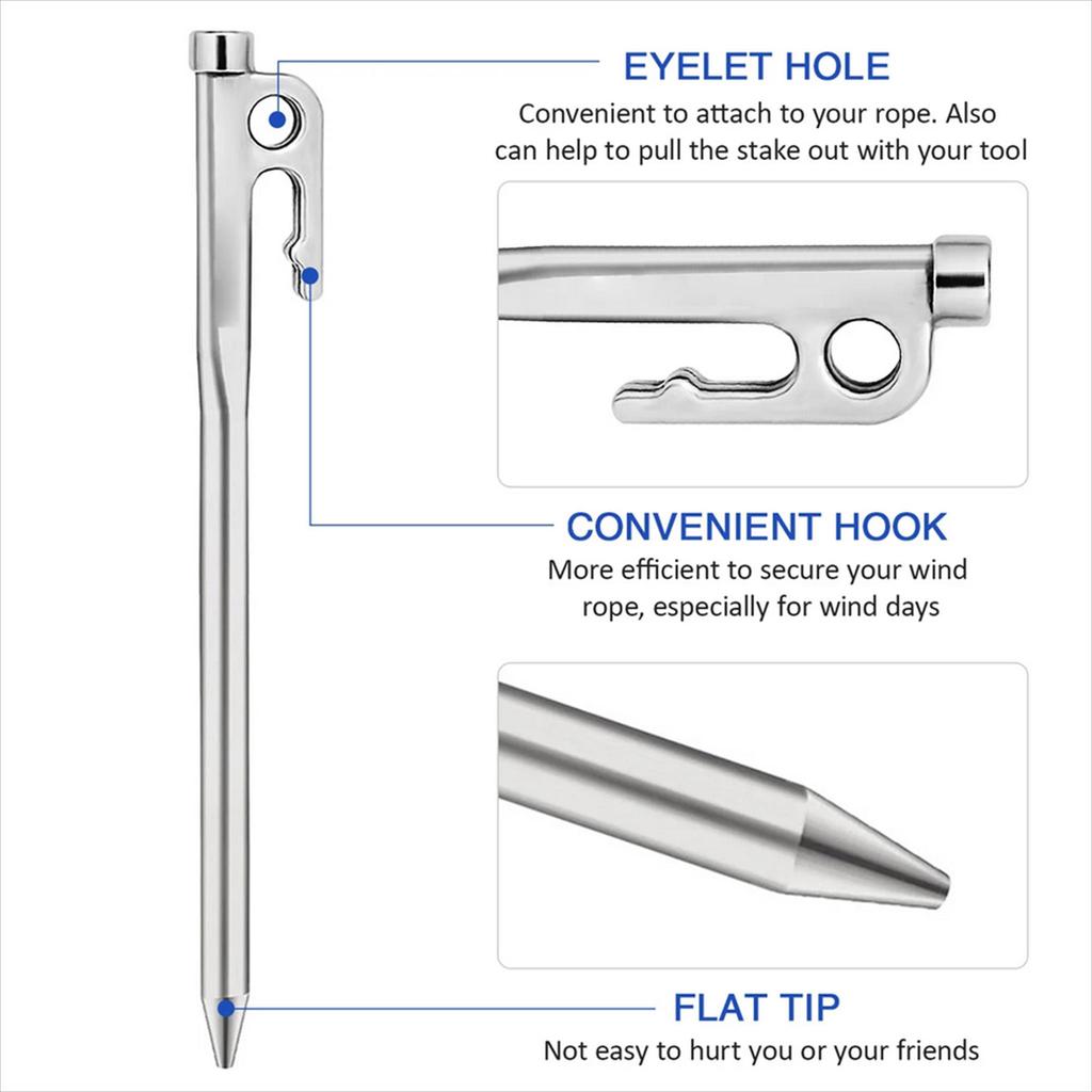 – Eyelet (Lubang): Memudahkan pemasangan tali tambahan atau sebagai lubang bantuan saat mencabut pasak menggunakan alat.