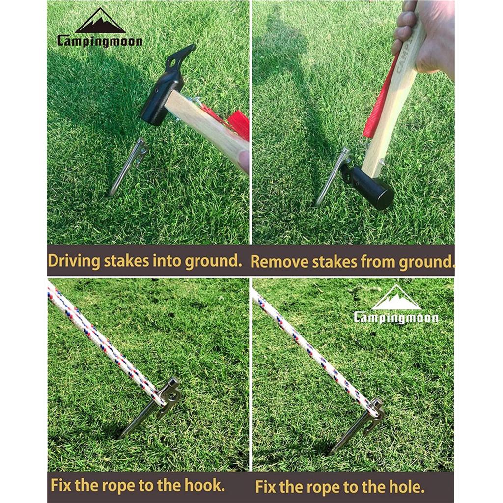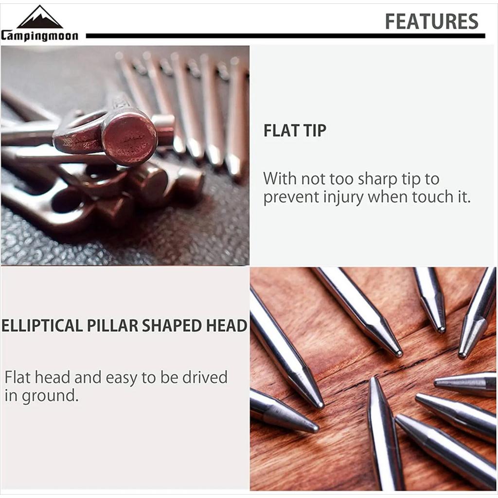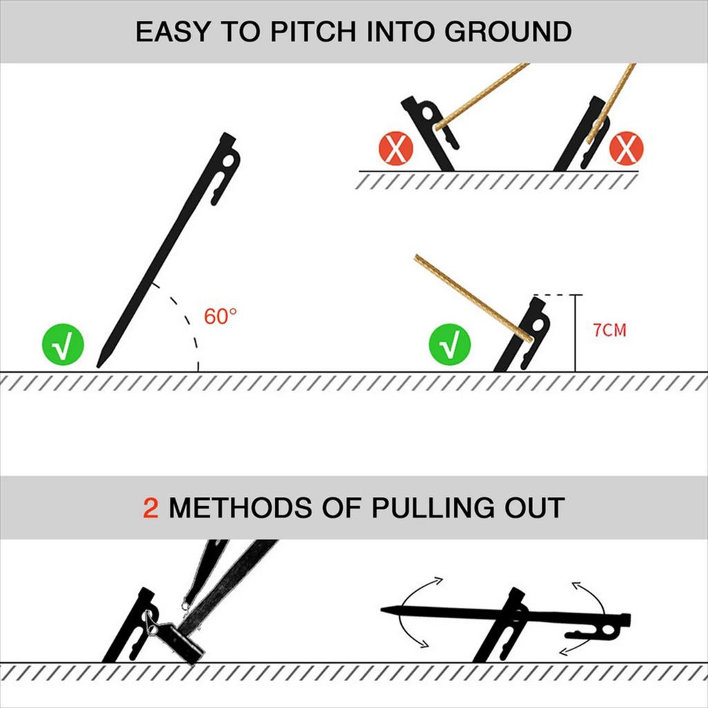 – Saran Penggunaan: Tancapkan pasak dengan sudut 60 terhadap permukaan tanah untuk kekuatan maksimal, dan sisakan sekitar 7 cm di atas permukaan tanah.