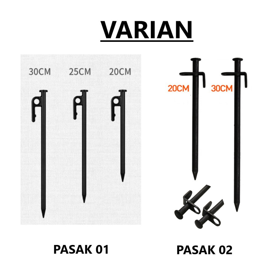 Aplikasi: Paku tenda ini akan menahan angin kencang. Bagus untuk menambat tenda dengan aman, kanopi, halaman/struktur taman atau trim lanskap.