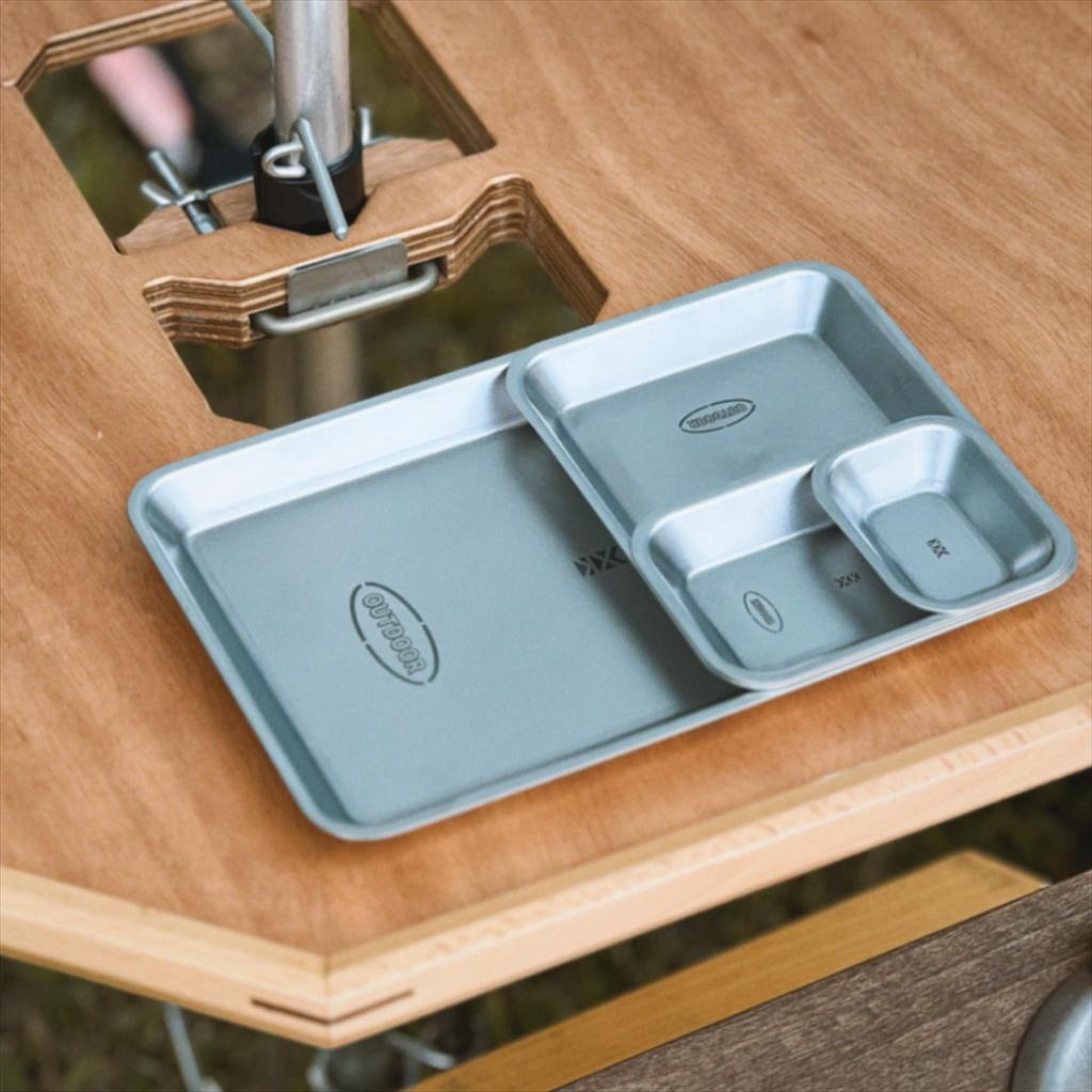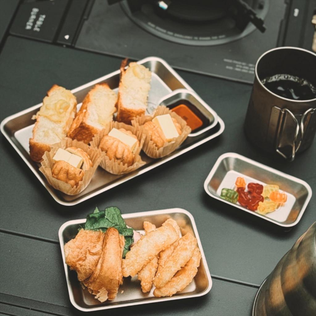 Piring kotak dengan desain half stack yang praktis dan efisien, cocok untuk kebutuhan outdoor maupun penggunaan sehari-hari. Dibuat dari material stainless steel 304 (STS 304) yang kuat, tahan karat, dan aman untuk makanan.
