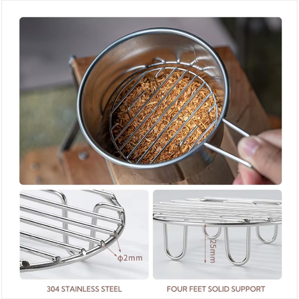 Rak Serbaguna CAMPINGMOON BBQ Wire Grill Outdoor Hiking adalah aksesori serbaguna untuk dapur outdoor Anda. Dibuat dari 304 stainless steel berkualitas tinggi, rak ini tahan karat, mudah dibersihkan, dan awet untuk penggunaan jangka panjang. Dengan desain kaki penyangga setinggi 25 mm, rak ini menjaga jarak ideal dari dasar panci atau wajan, memastikan sirkulasi panas yang optimal saat memasak.