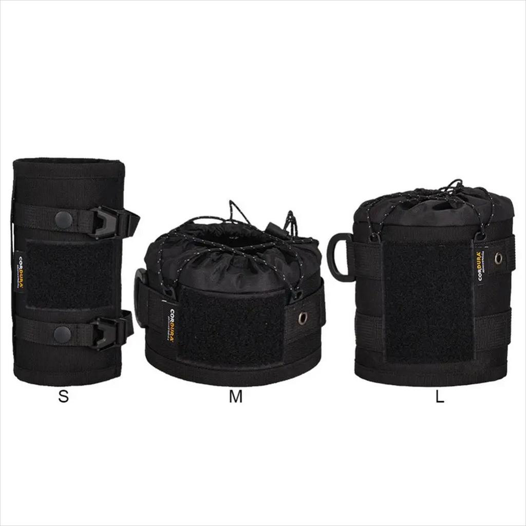 Bahan utama adalah CORDURA high-grade, terkenal karena kekuatan dan ketahanannya terhadap robekan. Selain itu, kain ini memiliki sifat water-resistant, sehingga tabung gas tetap aman saat terkena hujan ringan atau lembab.