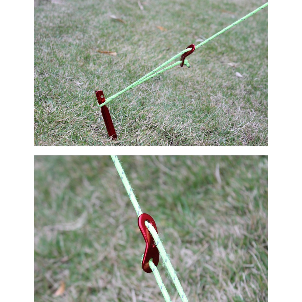 Saat membangun kanopi tenda, sesuaikan panjang tali angin dan kencangkan agar tidak tergelincir.