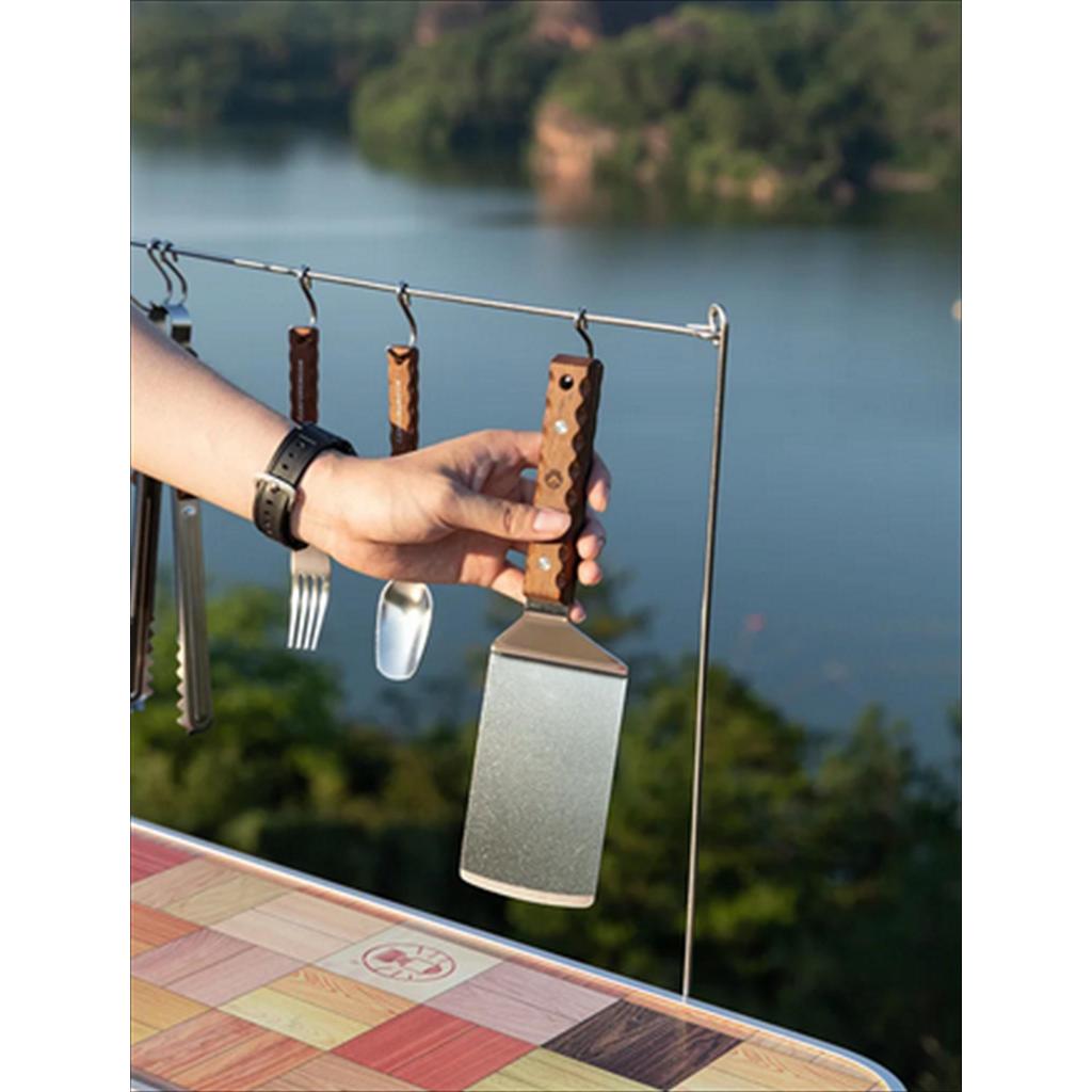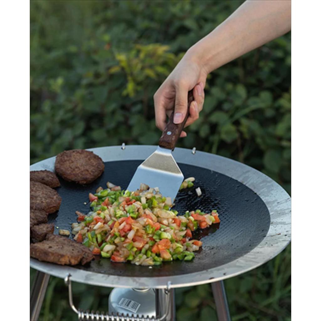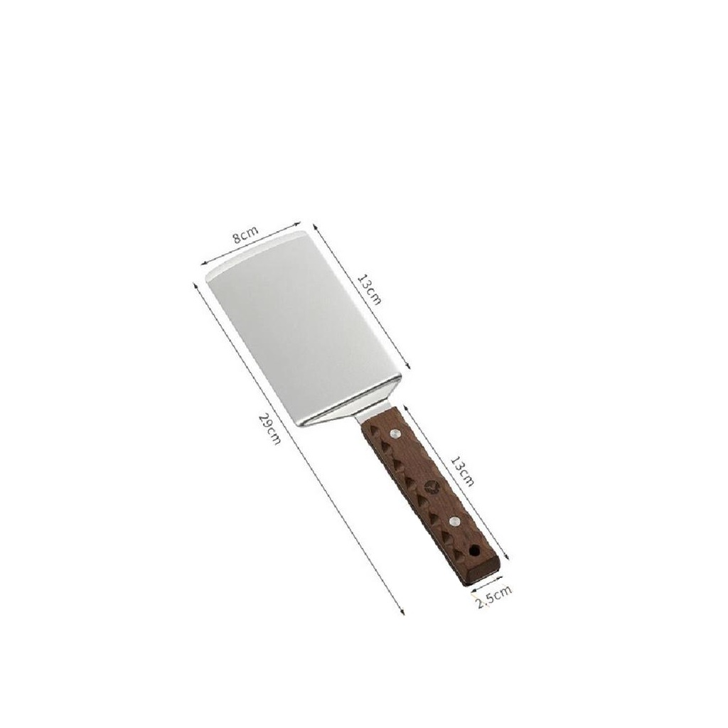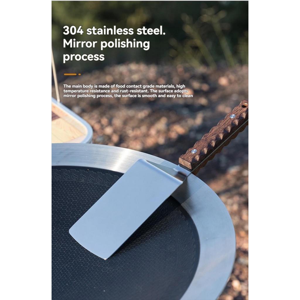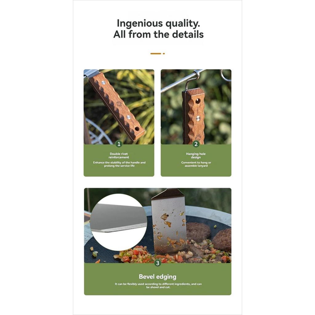 – Desain Ergonomis & Anti-Slip: Tekstur unik pada gagang kayu memastikan genggaman tetap mantap dan presisi saat membalik makanan.