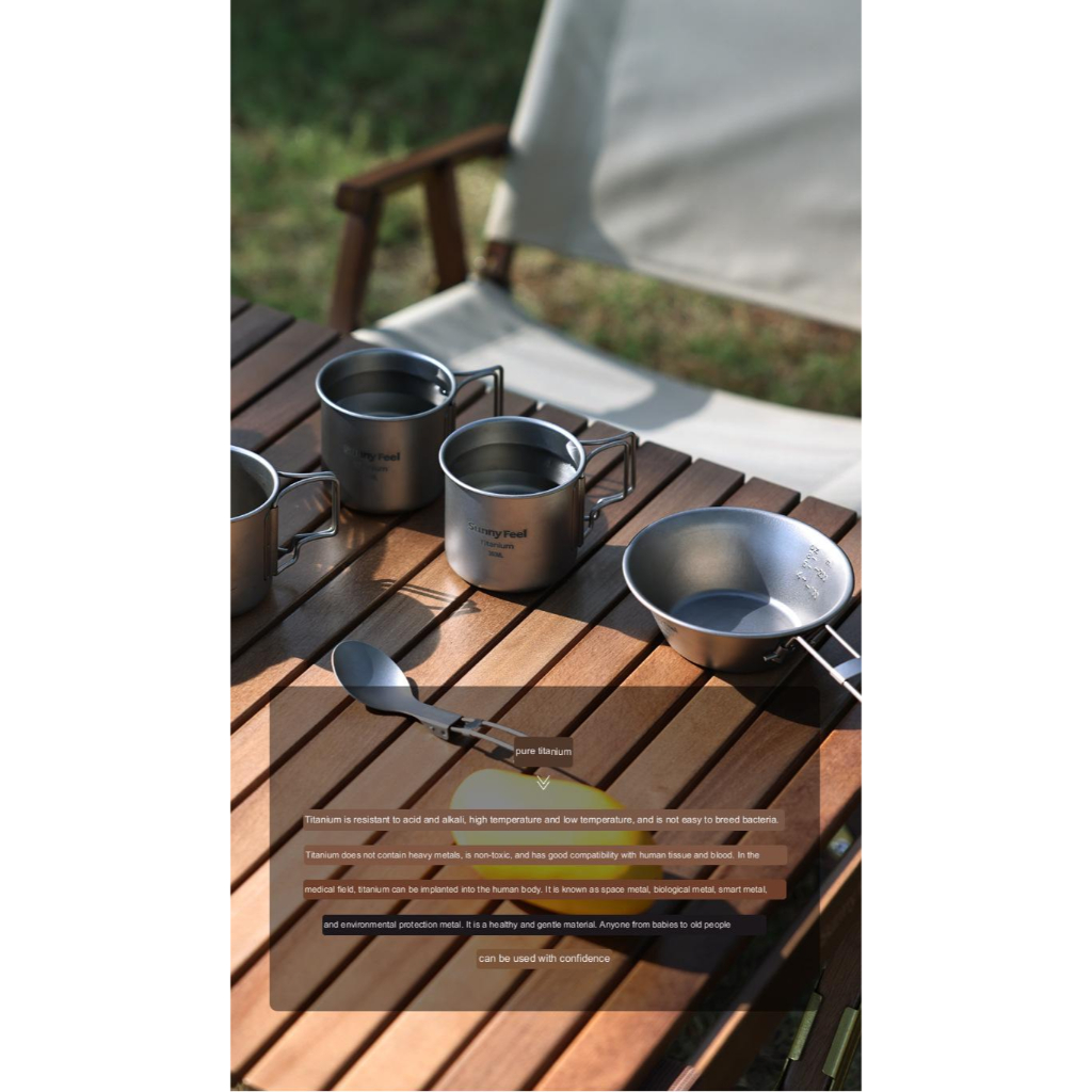 SUNNYFEEL Mangkuk Lipat Titanium Nesting Camping Outdoor Alat Makan Camping