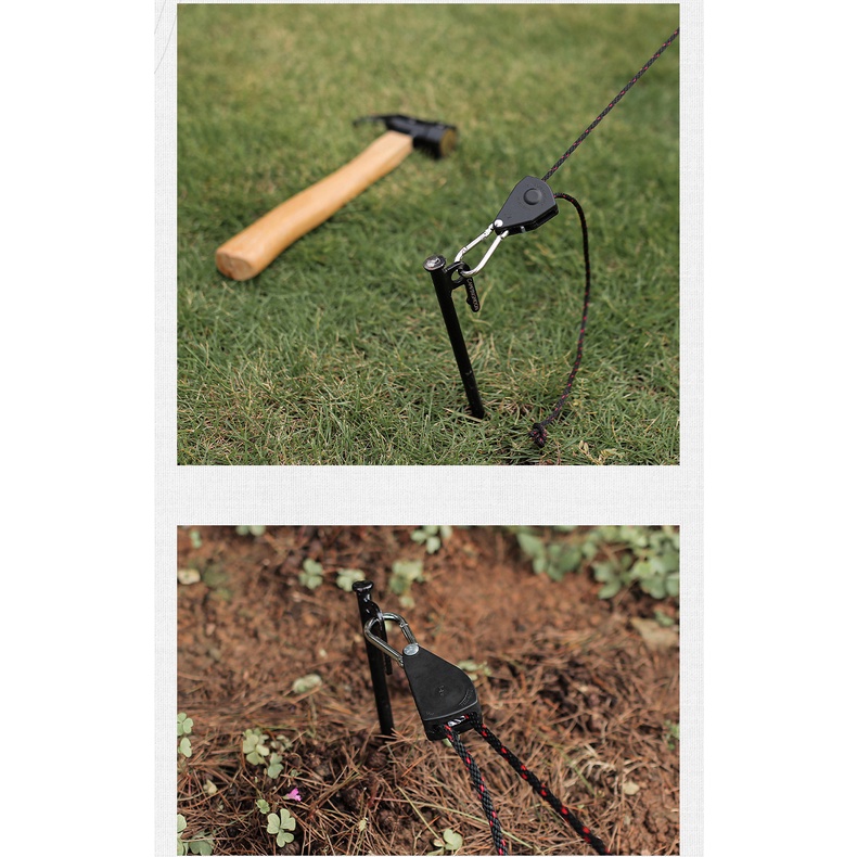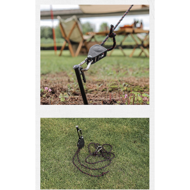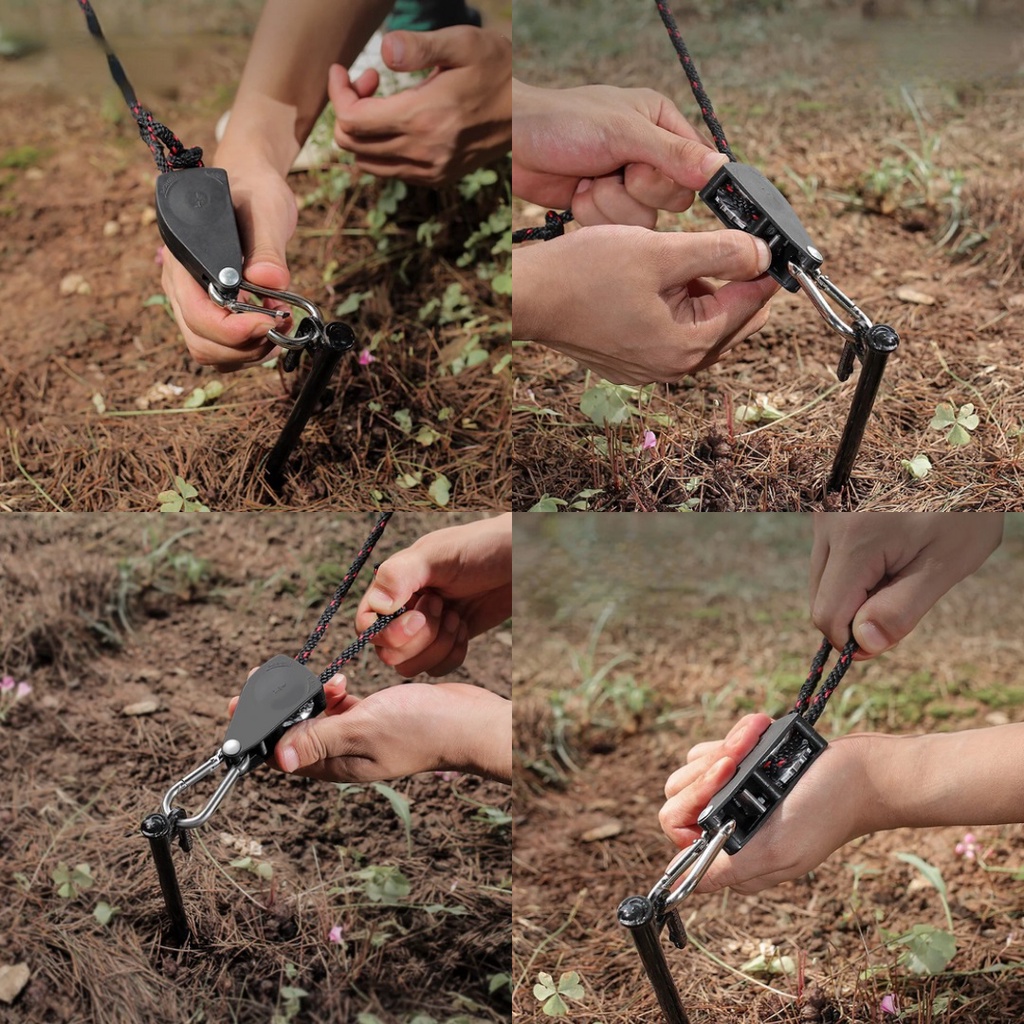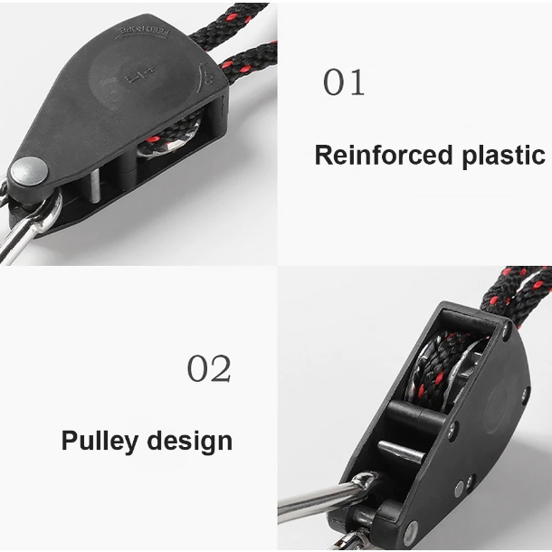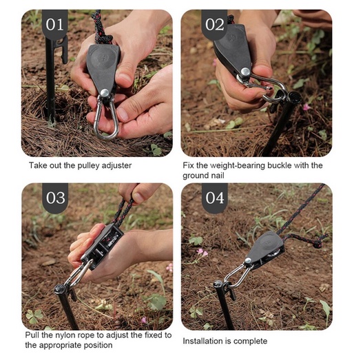 *Dengan gesper karabiner, mudah dunakan, melewati tali melalui katrol, mengikat simpul tali di satu ujung, tarik untuk menyesuaikan
