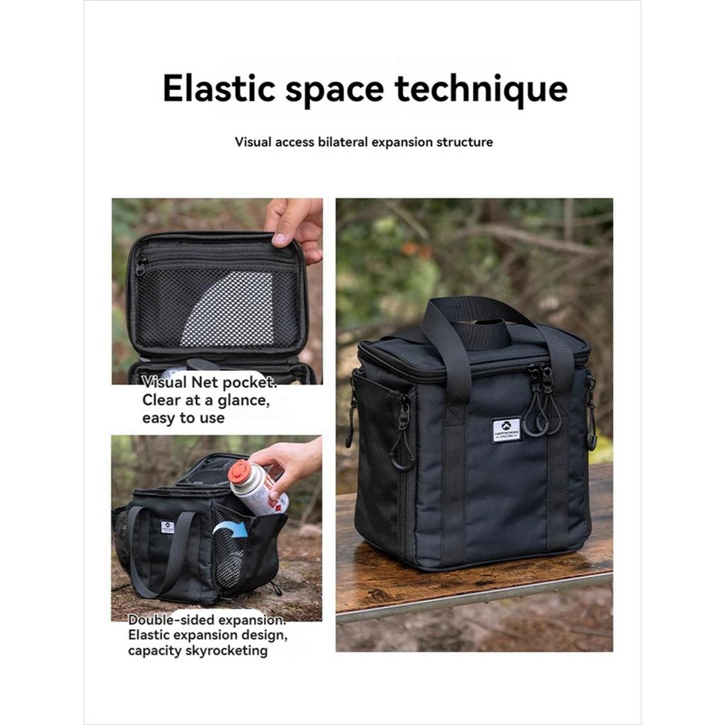 – Desain Ekspansi Unik (Elastic Space Technique): Dilengkapi dengan Double-sided Expansion (kantong samping yang bisa melebar) untuk menambah kapasitas penyimpanan secara instan, cocok untuk botol gas tambahan atau aksesoris lainnya.