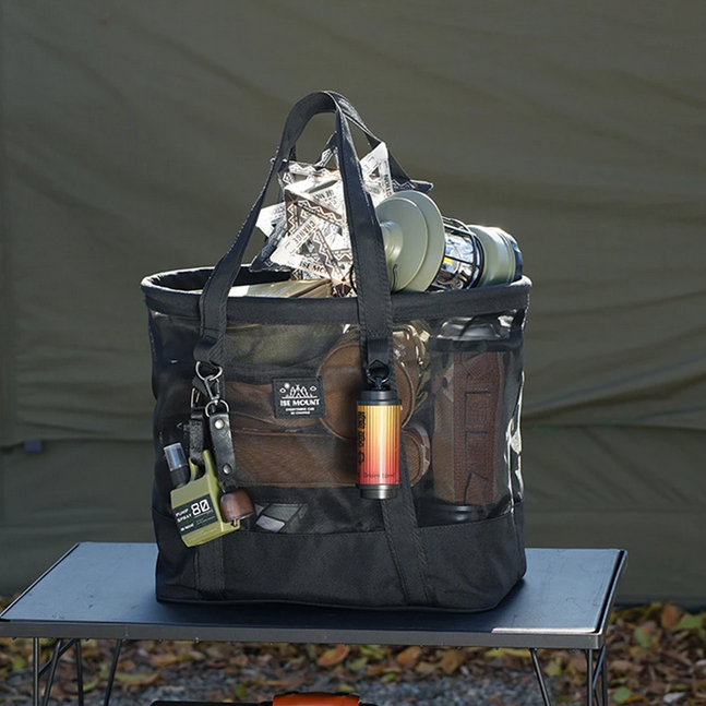 2. Desain Kapasitas Besar: Dengan daya dukung yang kuat, tas penyimpanan jaring berkemah ini untuk kebutuhan penyimpanan luar ruangan, menyediakan ruang yang cukup untuk semua kebutuhan.