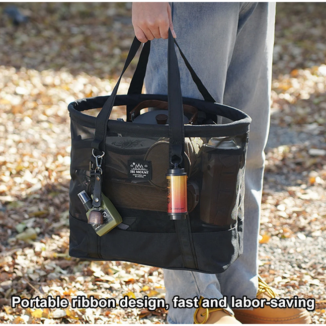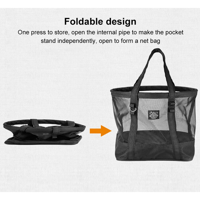 5. Desain Lipat dan Berdiri Sendiri: Tas piknik yang dapat dilipat dengan mudah, sementara pipa bawaan pada bukaan membantu saku berdiri secara mandiri, membentuk tas jaring yang dapat digunakan secara instan.