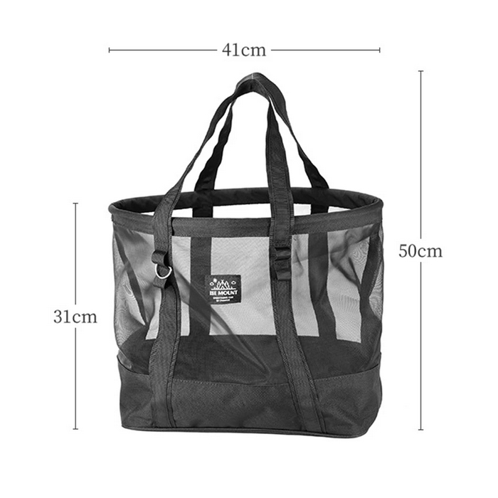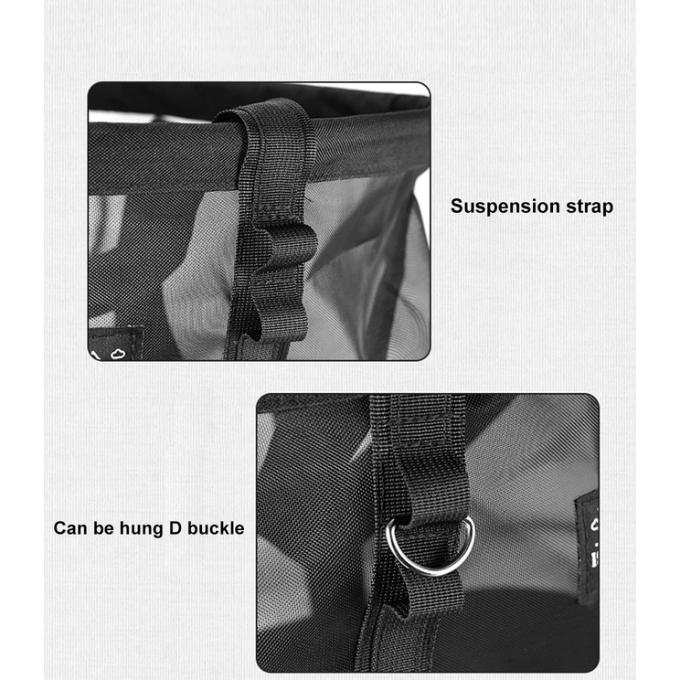 1. Jaring Nilon Kokoh: Dibuat dengan jaring nilon terenkripsi, tas jinjing jaring luar ruangan ini tahan aus, tahan air, dan memastikan penggunaan jangka panjang tanpa menyerap air.