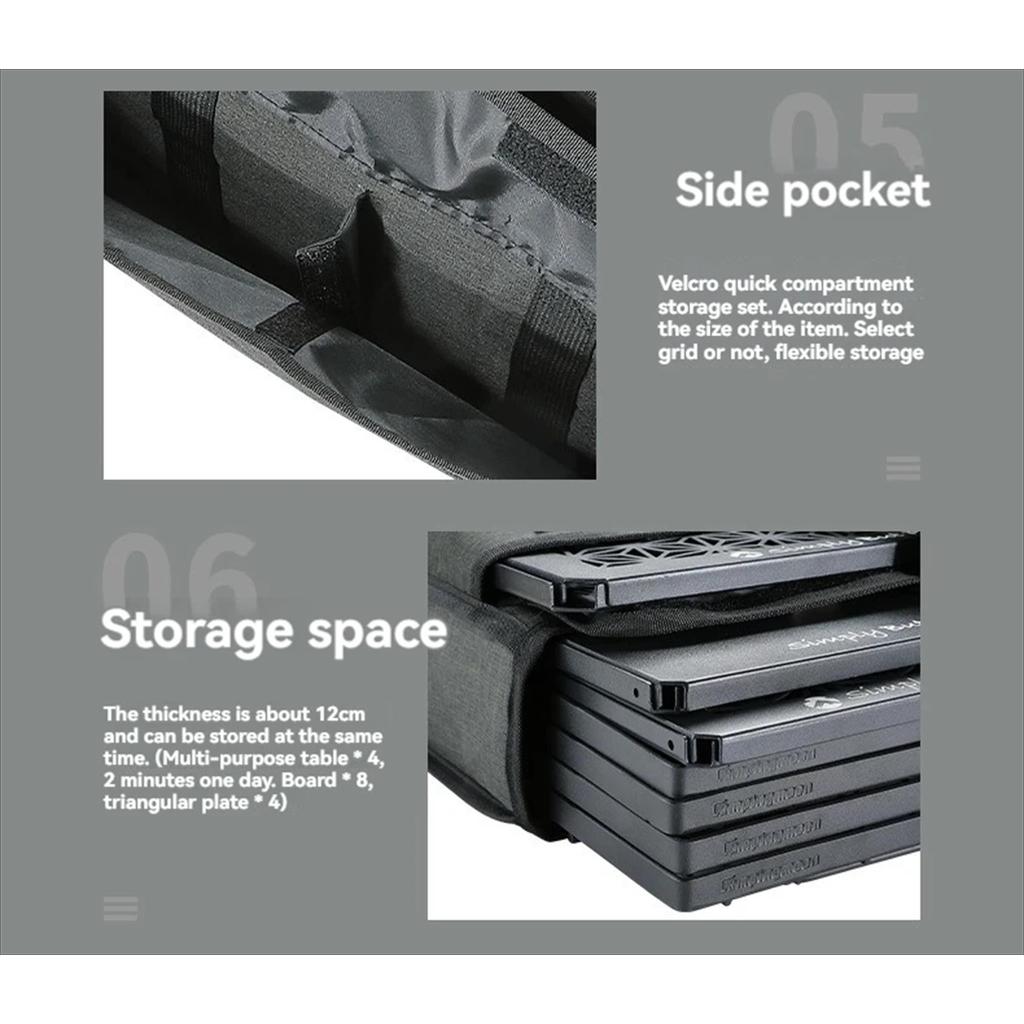 – Kapasitas Ekstra Besar & Fleksibel : Memiliki ketebalan sekitar 12cm yang mampu menampung beberapa unit meja serbaguna sekaligus (contoh: 4 meja multifungsi + 8 papan + 4 plat segitiga).