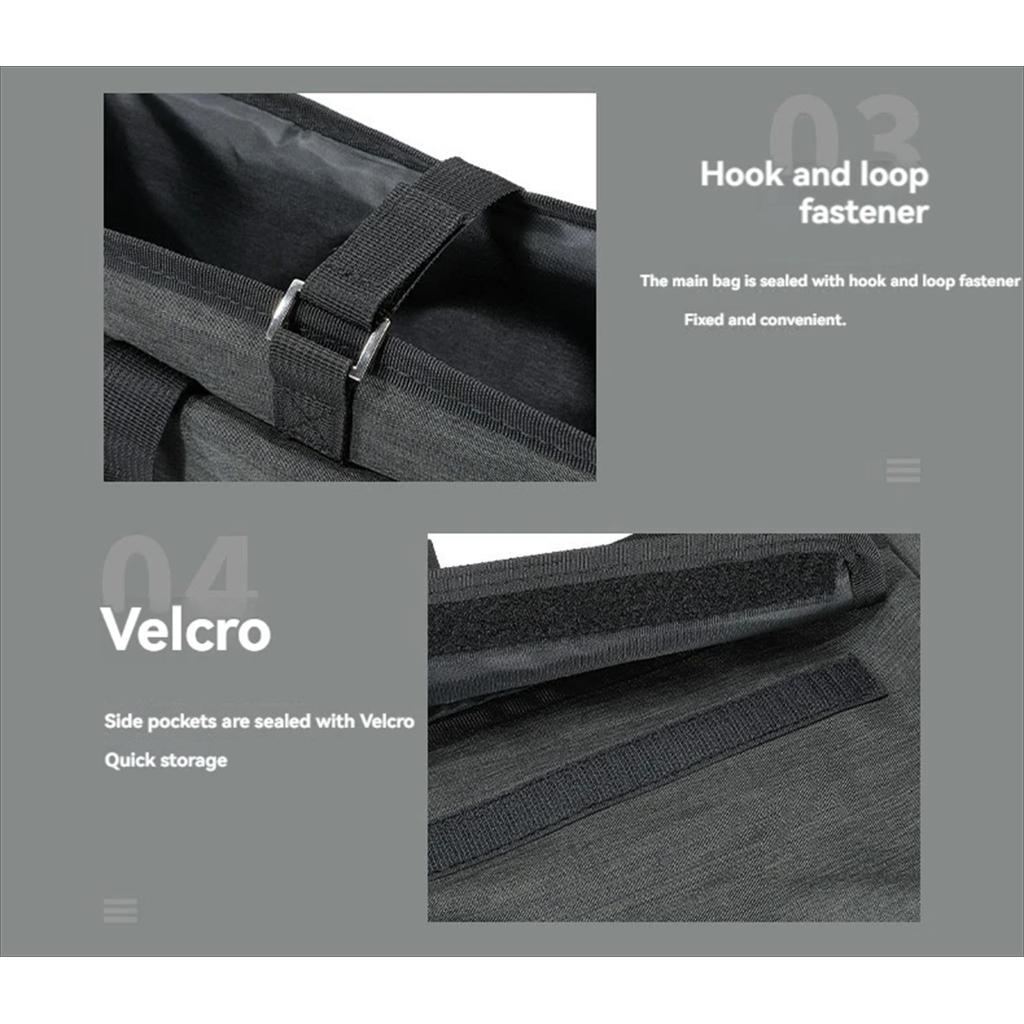 – Side Pockets: Terdapat kantong samping dengan penutup Velcro untuk penyimpanan cepat. Kompartemen samping ini bersifat fleksibel; Anda dapat memilih untuk menggunakan sekat atau tidak sesuai ukuran barang.