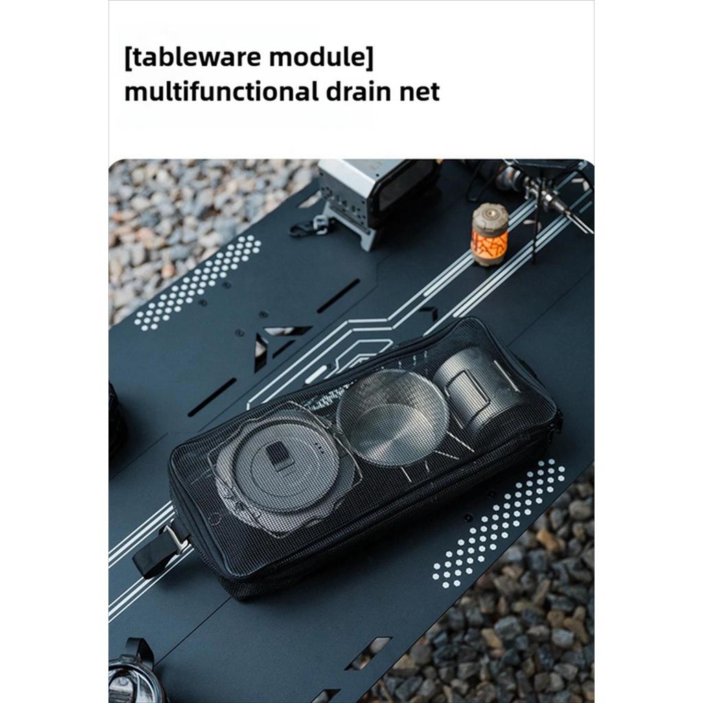 – Tableware Drain Net: Modul alat makan menggunakan bahan encrypted mesh yarn yang memungkinkan sirkulasi udara maksimal untuk mengeringkan peralatan makan yang basah.