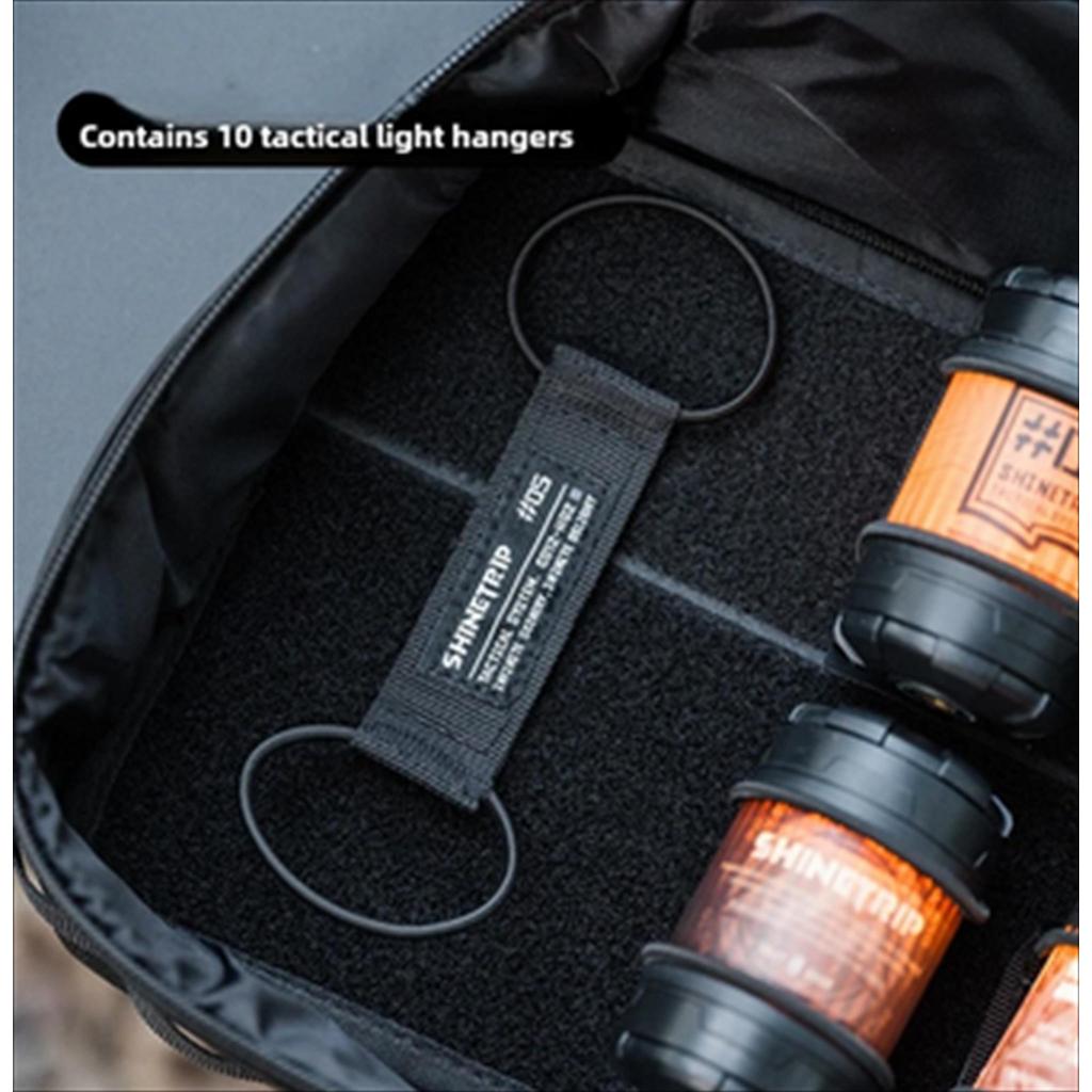 – Tactical Light Hangers: Khusus untuk modul lampu, tersedia 10 gantungan taktikal untuk menyimpan berbagai koleksi lampu camping dengan aman.