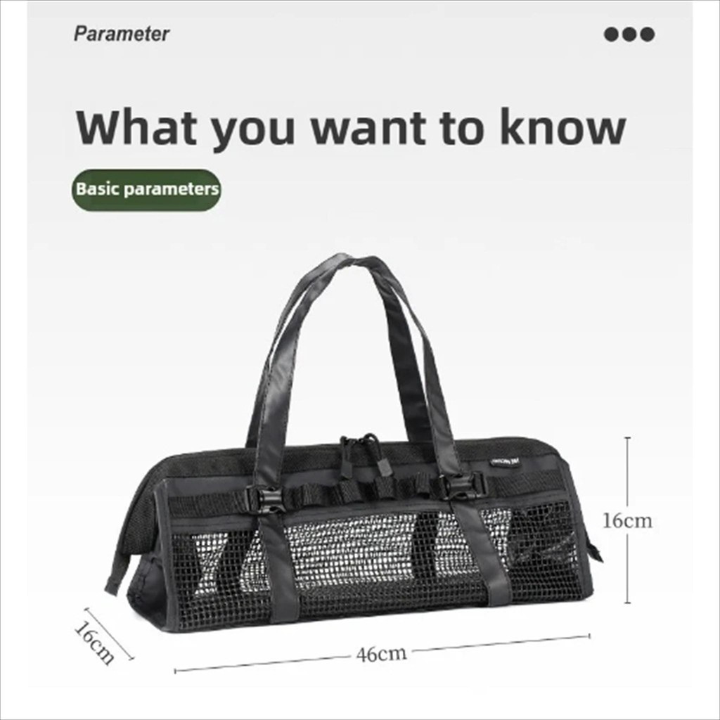 Tas pasak ini tidak terbatas hanya pada penyimpanan pasak lantai; Ini adalah alat serbaguna yang dapat digunakan untuk berbagai aktivitas luar ruangan. Kapasitasnya yang besar membuatnya sempurna untuk menyimpan dan mengatur berbagai macam barang, mulai dari tiang pancang berkemah hingga peralatan memancing. Desain jaring memastikan barang terlihat dan mudah diakses, sehingga memudahkan menemukan apa yang dibutuhkan saat Anda membutuhkannya.