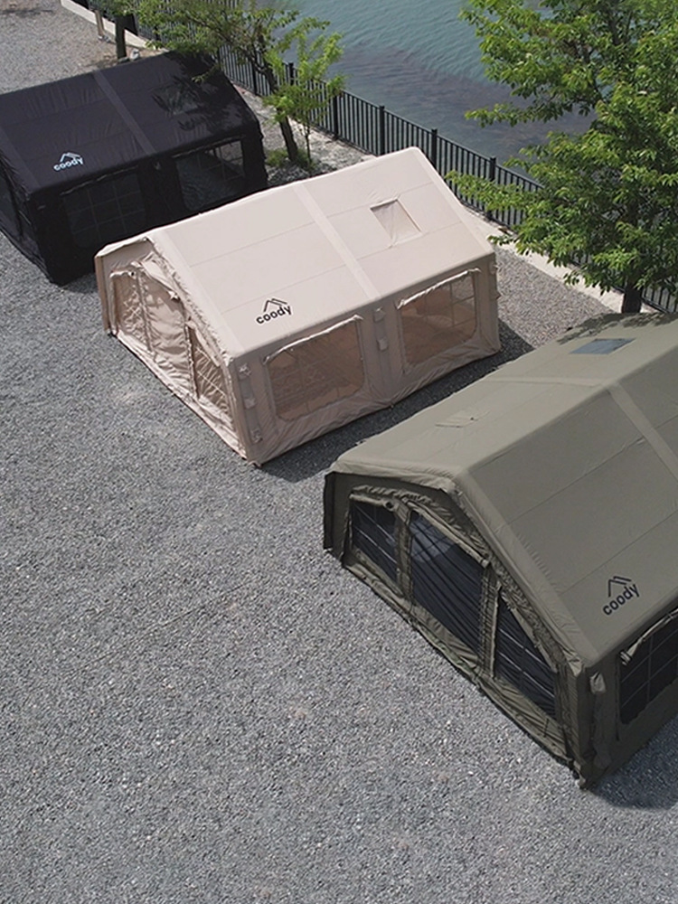 Tenda utama, terpal anti hujan, 3 jenis pintu, jendela TPU ×4, pasak tanah, pompa udara, dan tas penyimpanan praktis.