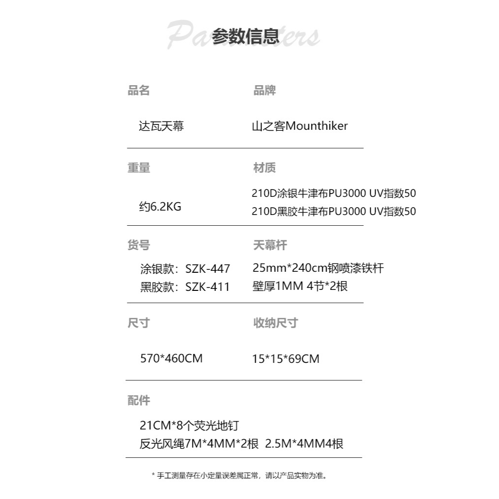 *Flysheet = 210D Silver Coated Oxford Cloth PU3000UV