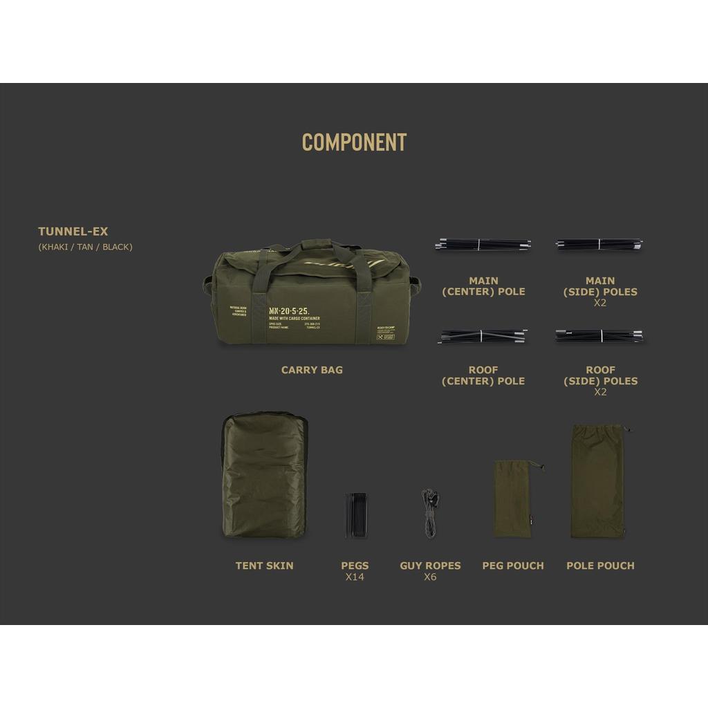 Didukung oleh tiang DAC kelas dunia, kain 75D Ripstop dengan PU & Silicone Coating, serta tali Dyneema berdaya tarik tinggi, TUNNEL-EX menawarkan perlindungan optimal dari cuaca sekaligus daya tahan jangka panjang. Desainnya yang elegan dan fungsional menjadikannya bukan hanya tempat berteduh, tetapi ruang hidup di alam terbuka.