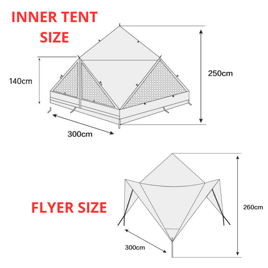 Inner Tent Size: (Around) 300*300*250cm