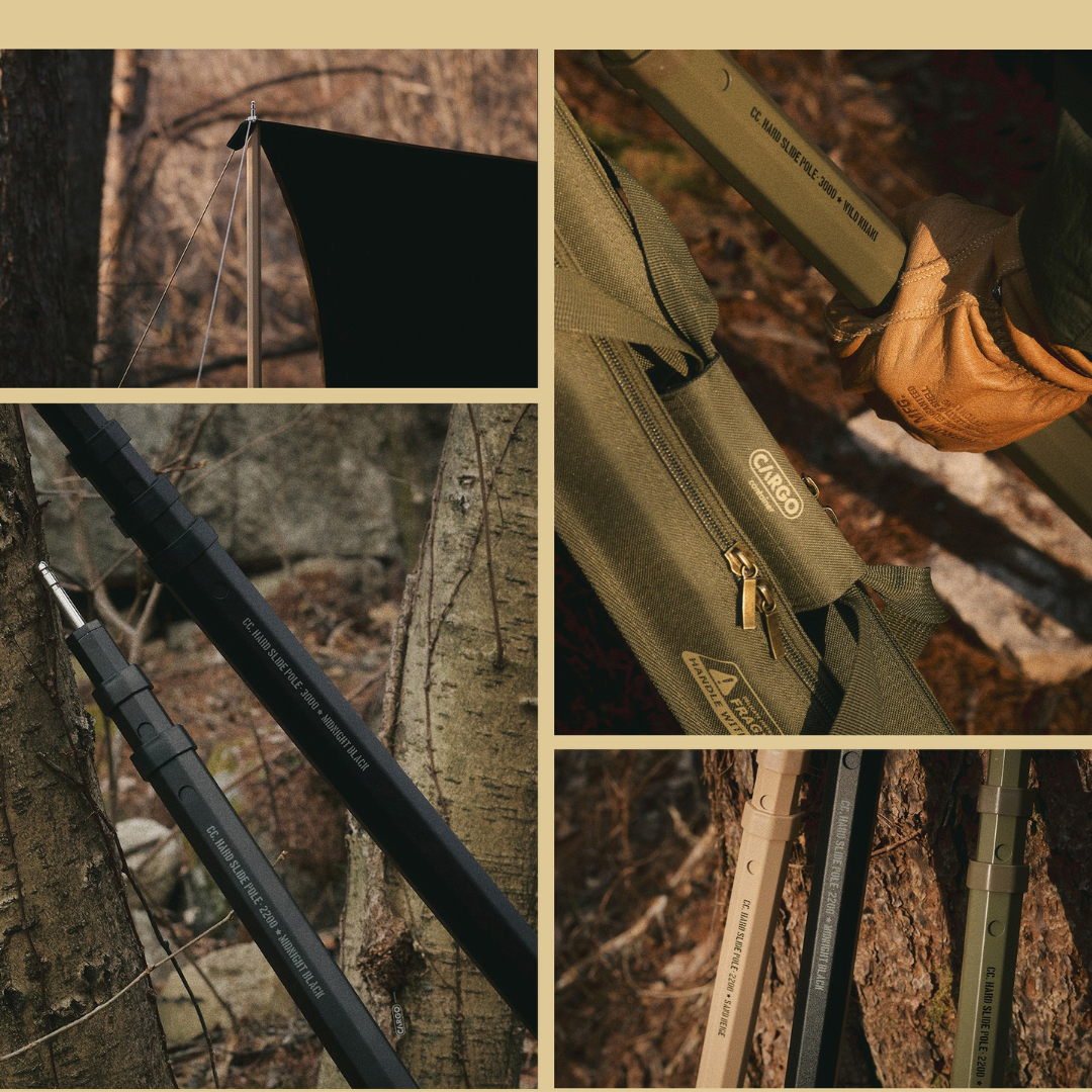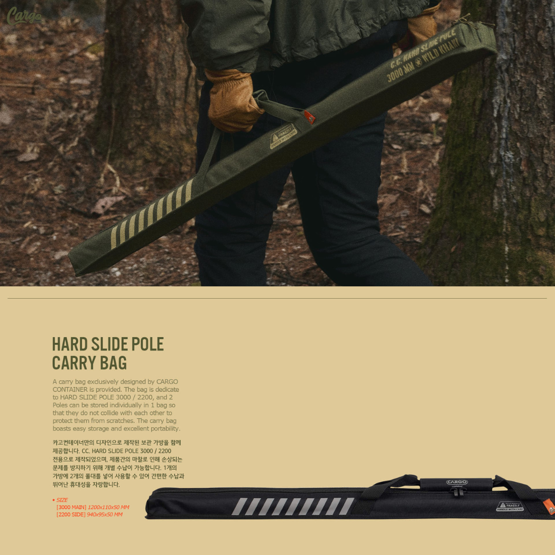 The aesthetic point of view is completed with the signature color of CARGO CONTAINER, intaglio logo at the bottom, and design printing. Customized carry bag is made of strong and tough 600D fabric to protect poles from impact, heat, and cold air from the outside. 2 Poles can be stored individu- ally in 1 bag so that they do not collide with each other to protect them